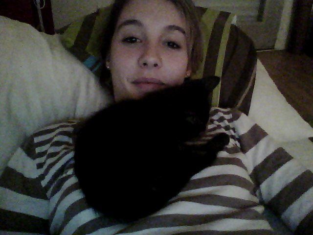 | Dire merci | Oh que oui j'ai hate je dois même commencer à agacer mon homme vu que tous les jours je lui répète Mon chaton (Guiness ) c'est un pôt de colle mais vraiment ... La journée elle dort sur les genoux de mon chéri vu qu'il bosse à la maison elle ne le lâche pas d'une semelle ou presque. Et là nuit elle dors au dessus de ma tête sur mon coussin si si vous avez bien lu Apparemment hier elle avait même sa tete posée sur la mienne |