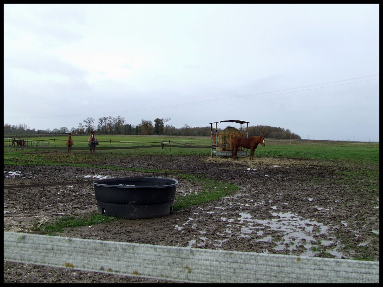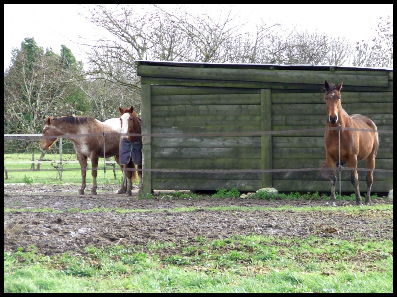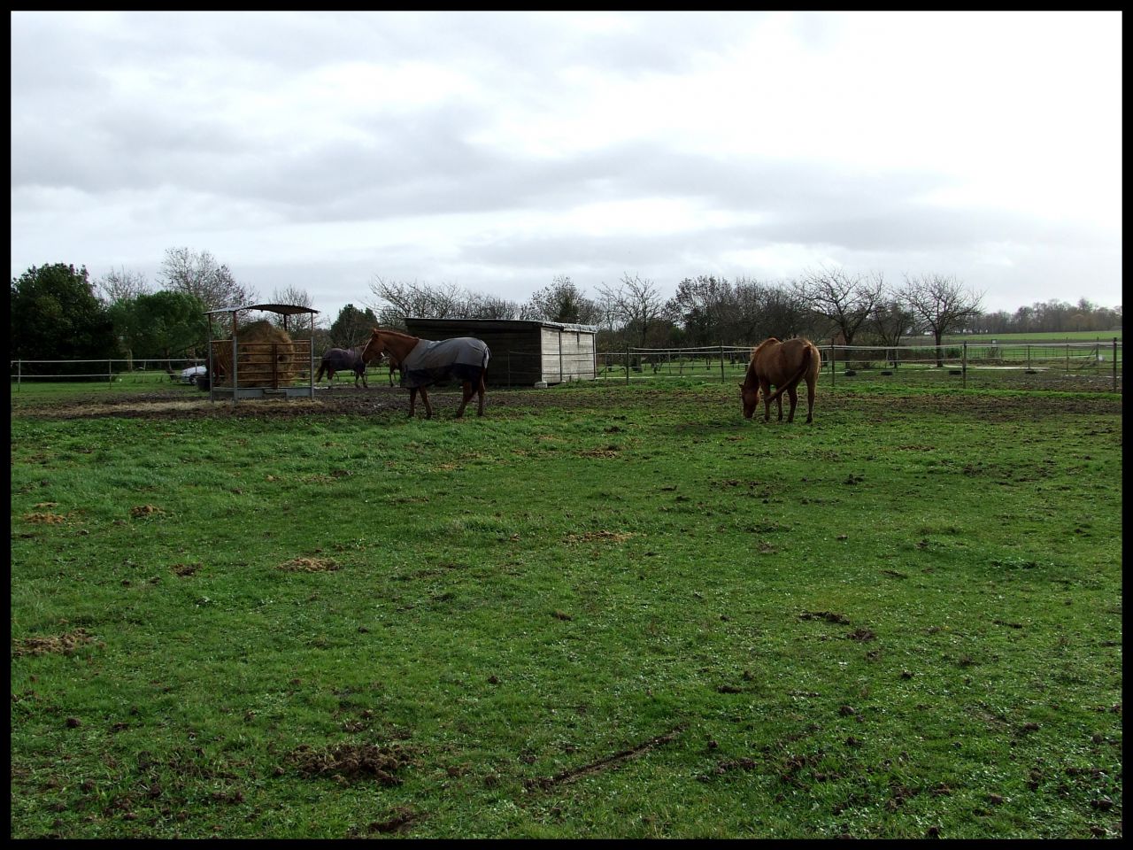 | Dire merci | News : Grooooooooooos pansage hier après midi. Un tas de boue. Par contre c'est marrant ici la terre est plus argileuse et s'en va beaucoup mieux.Sinon Mademoiselle a provoqué un changement dans la répartition de pré... Avec la tempête un piquet tout fin est tombé entre les deux prés du coup Madame est allé voir comment c'était de l'autre coté et en revenant dans son pré (oui oui elle passe les clotures au sol sans soucis ) elle a rammené un nouvel amoureux : un trotteur arrivé il y a deux semaines. Du coup maintenant les gérants les ont laissé ensemble et comme ça il protège Queen de l'autre jument qui l'aime toujours pas J'ai pu la sortir du pré sans soucis. Par contre je crois que heureusement qu'il y a un sas, car l'autre est un pot de colle ++++ et sa proprio me la confirmé hier soir. J'espère que ça va pas déteindre sur la miss ... Elle appelle pas mal, et regarde un peu beaucoup partout. Hier j'ai du me facher d'ailleurs car elle voulait pas que je lui brosse les membres. Toujours en train de les lever et de bouger dans tous les sens, ça m'a agacé ...On a été faire le tour de toutes les installations, impeccable. On a fait deux fois le tour de la carrière tranquilou et même marché dans l'eau Par contre j'ai pas pu lui montrer le rond de longe c'était devenu une piscine olympique Je vous jure on voyais même plus le sable. J'y retourne cet apres midi, je pense que je vais détendre tranquilou dans la carrière, au pas et au trot. Et peut etre au galop si ça blessure ne tire pas trop. Ah et je lu ai montré les gros plots de soubassement histoire de l'entrainer ![]() |