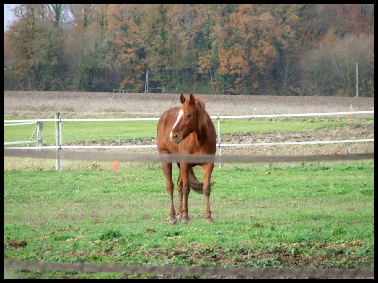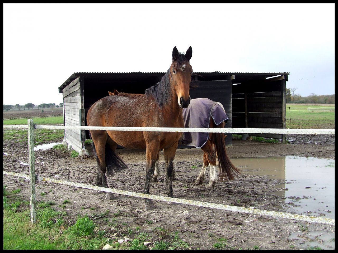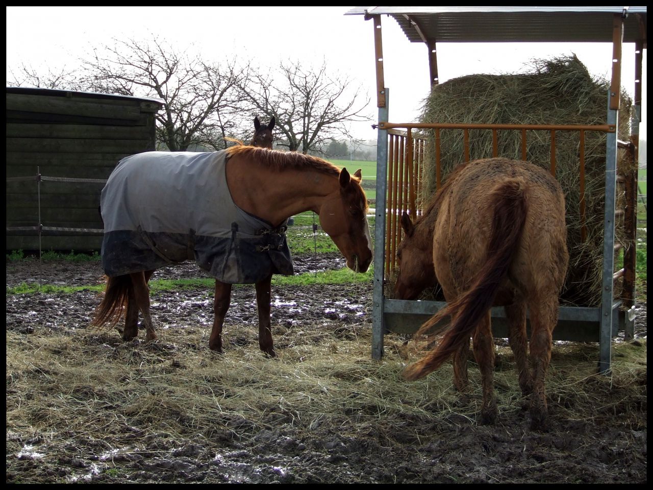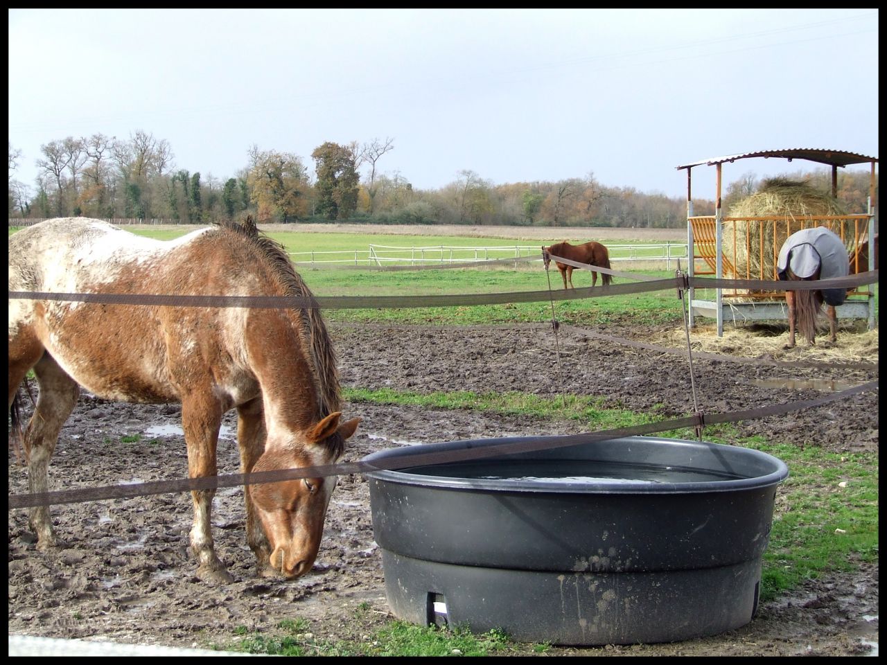 | Dire merci | News : Grooooooooooos pansage hier après midi. Un tas de boue. Par contre c'est marrant ici la terre est plus argileuse et s'en va beaucoup mieux.Sinon Mademoiselle a provoqué un changement dans la répartition de pré... Avec la tempête un piquet tout fin est tombé entre les deux prés du coup Madame est allé voir comment c'était de l'autre coté et en revenant dans son pré (oui oui elle passe les clotures au sol sans soucis ) elle a rammené un nouvel amoureux : un trotteur arrivé il y a deux semaines. Du coup maintenant les gérants les ont laissé ensemble et comme ça il protège Queen de l'autre jument qui l'aime toujours pas J'ai pu la sortir du pré sans soucis. Par contre je crois que heureusement qu'il y a un sas, car l'autre est un pot de colle ++++ et sa proprio me la confirmé hier soir. J'espère que ça va pas déteindre sur la miss ... Elle appelle pas mal, et regarde un peu beaucoup partout. Hier j'ai du me facher d'ailleurs car elle voulait pas que je lui brosse les membres. Toujours en train de les lever et de bouger dans tous les sens, ça m'a agacé ...On a été faire le tour de toutes les installations, impeccable. On a fait deux fois le tour de la carrière tranquilou et même marché dans l'eau Par contre j'ai pas pu lui montrer le rond de longe c'était devenu une piscine olympique Je vous jure on voyais même plus le sable. J'y retourne cet apres midi, je pense que je vais détendre tranquilou dans la carrière, au pas et au trot. Et peut etre au galop si ça blessure ne tire pas trop. Ah et je lu ai montré les gros plots de soubassement histoire de l'entrainer ![]() |