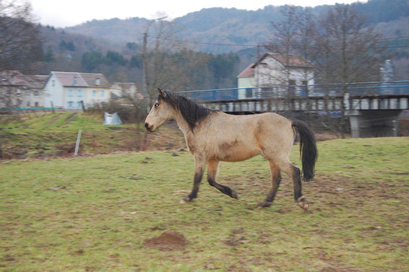 | Laska : non j'ai pas pris la pouliche, ses aplombs me génaient, du blanc apparaissait dans le poil noir, et ce qui m'a décidé à dire non : une tache est apparue dans son oeil bleu juste au moment ou je suis tombée sur l'annonce de ma jument.. j'ai eu peur de cet oeil changeant, alors je l'ai laissé à l'autre personne qui la voulait a tout prix. Parallelement, j'ai essayé la jument, j'ai adoré, j'ai acheté. Je ne sais pas encore si je regrette car le premier essai a la maison a ete décevant (jument qui m'a embarquée au galop, a foncé sur l'autre jument, du coup moi déséquilibrée, chute...) J'attends de pouvoir (et d'avoir le courage) de la remonter pour me faire une idee. |