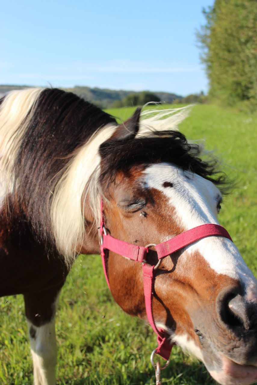 Merci Aline objectivement, on ne peut pas dire qu'il est beau, il est en realité plutot mal fait, mais il a une tete expressive, et c'est un amour ce cheval, il est vraiment gentil. c'est mon vieux crouton d'amour quoi ! paquita est arrivée apres, c'est différent, et elle est assez sauvage, et j'avoue que je devrais la bosser plus... surement plus tard... |