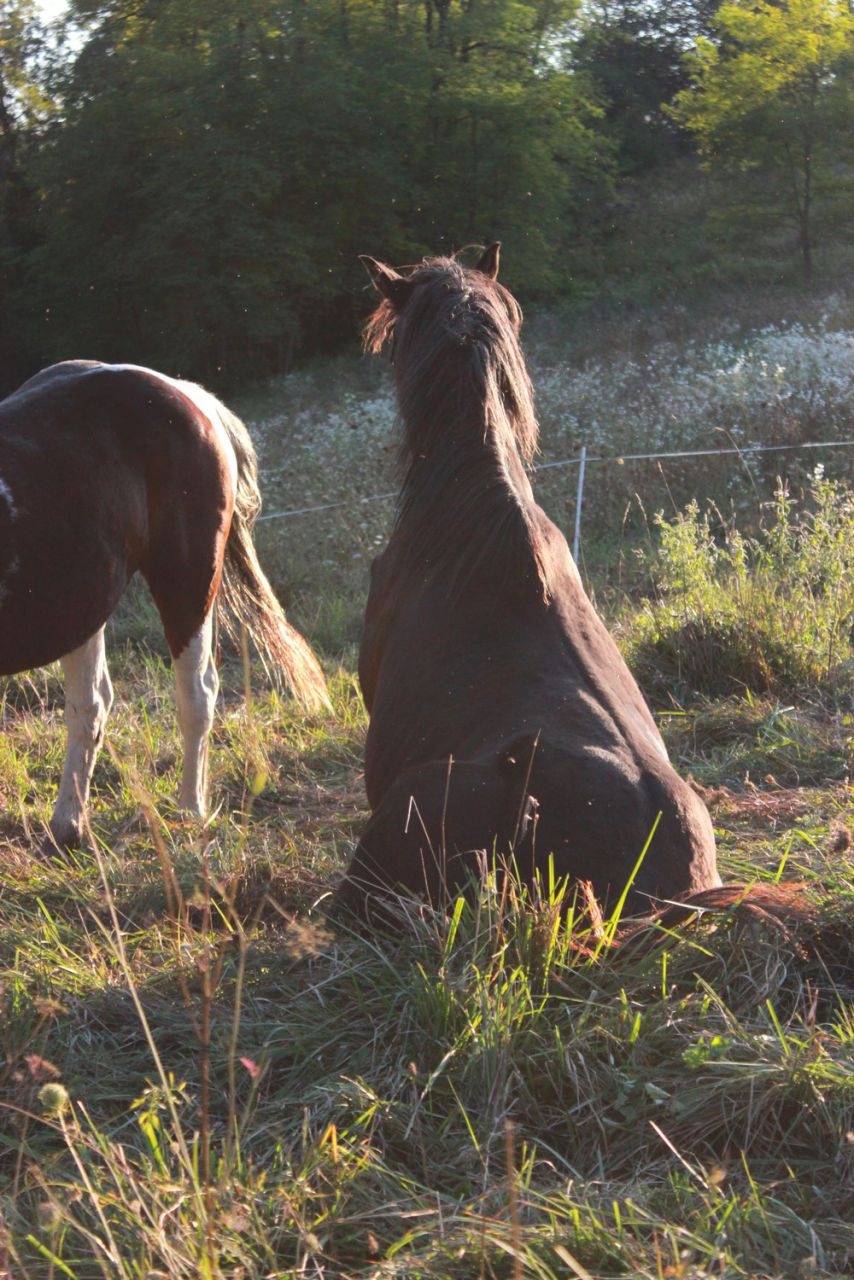 | ben là ils sont à 10km de chez moi. il n'y a pas d'abri, et le pré est trèèèèss humide. du coup, si tout se passe comme prévu, cet hiver ils viendront en pension dans mon village. Je les aurai sur place, et comme ca, si je veux m'absenter un week end, je pourrai partir l'esprit tranquille ![]() |