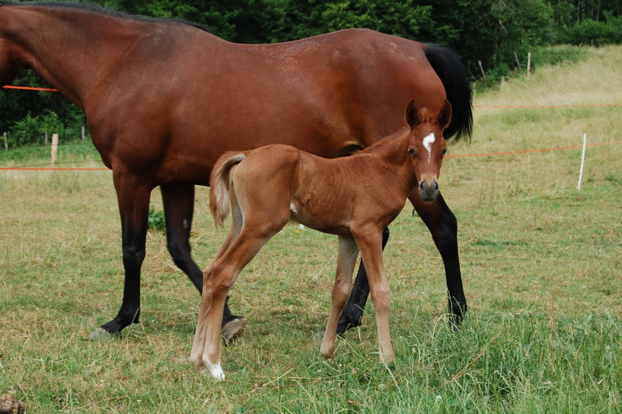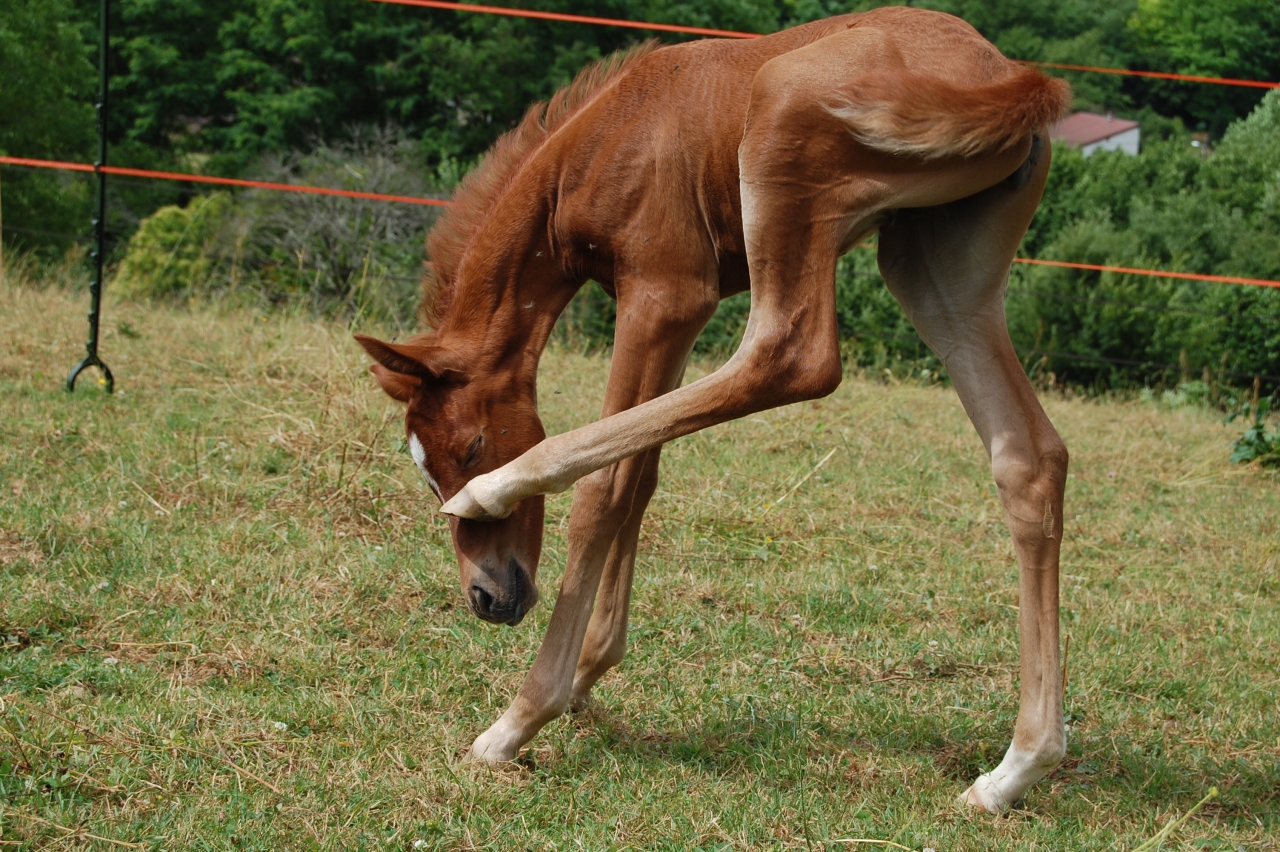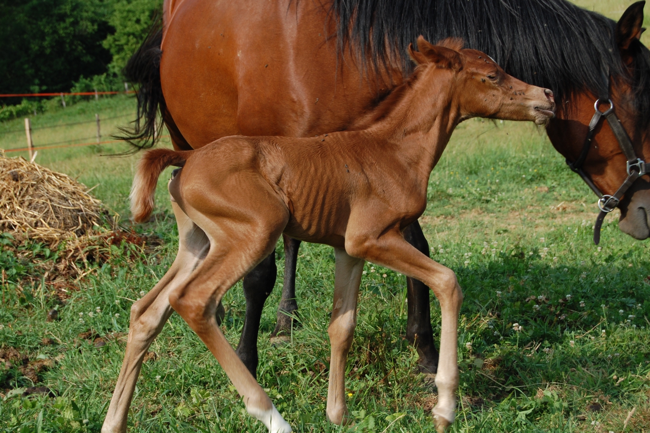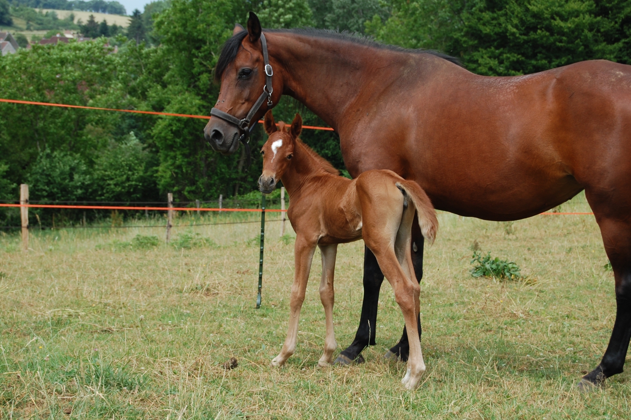 | Dire merci | De toute façon, pour sortir de l'alezan, il faut que les deux parents soient porteur du gène ![]() J'ai l'impression que elle aussi fait courir sa maman? Falkow emmène sa mère où il veut (sauf à l'heure de la bouffe, mais à un mois, il mange déjà dans les seau...) |
