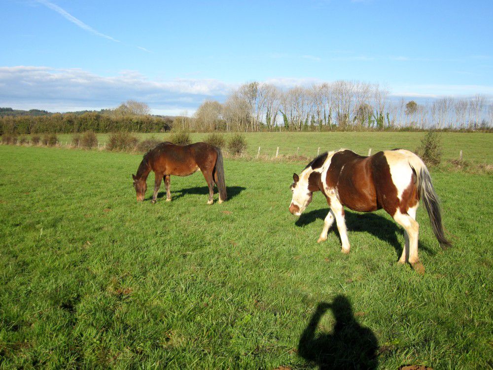| Les bourricots sont arrivés ce soir dans leur nouveau pré : une pension pré pour l'hiver. bon, on a fait du rab de cours au club ce soir, donc bien sur j'etais en retard, et donc on a chargé les chevaux à la tombée de la nuit, il faisait nuit noire quand on les a dechargés. Ils ont bien vu la bonne herbe, du coup, ils n'ont meme aps cherché à galoper plein cul... c'est super, du coup, pour cet hiver, ils sont à 500 m de chez moi |