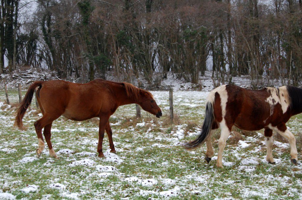 | deux copines ont rejoint les chevaux ! Laïcha, vieille poulinière pur sang arabe et Jawel, jeune jument franche montagne. je m'en suis rendue compte tout à l'heure en allant les voir, et forcement, j'avais pas d'appareil photo... j'vais tacher de vous en faire ![]() |