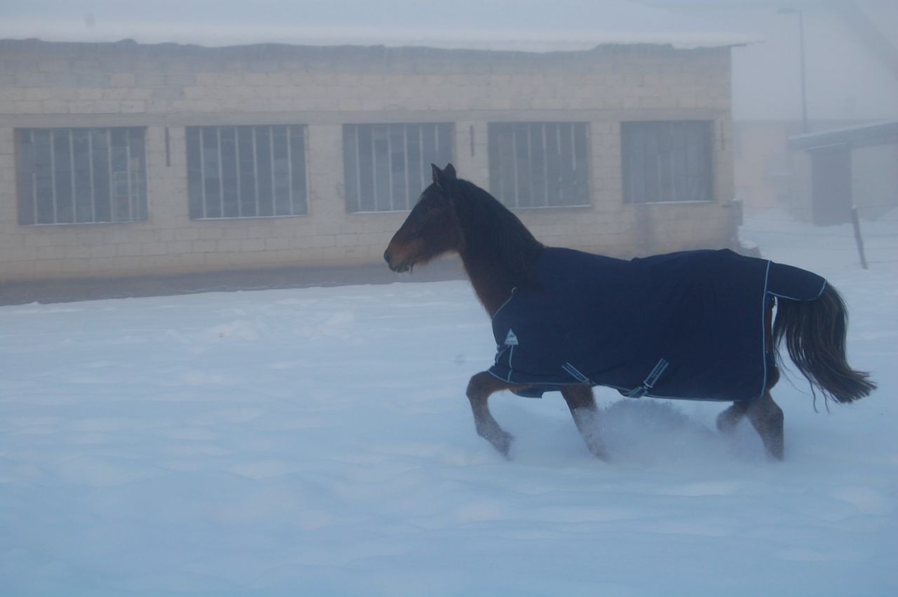 | et sinon, ardent et paquita sont dans leur nouvelle maison, notre nouvelle maison depuis hier ! Il n'y a rien à manger au sol car il y avait encore un cheval y a trois jours, n'empeche qu'ils préfèrent quand meme brouter que de manger le bon foin au fond de l'abri.. j'essaie de charger quelques photos ce soir... |