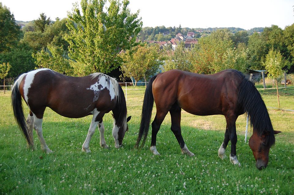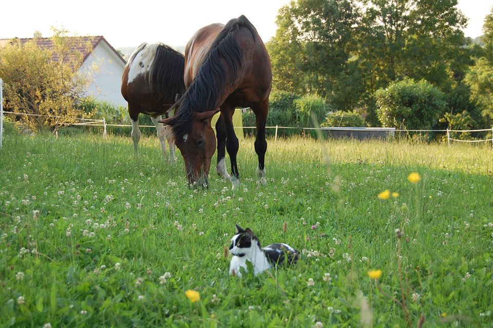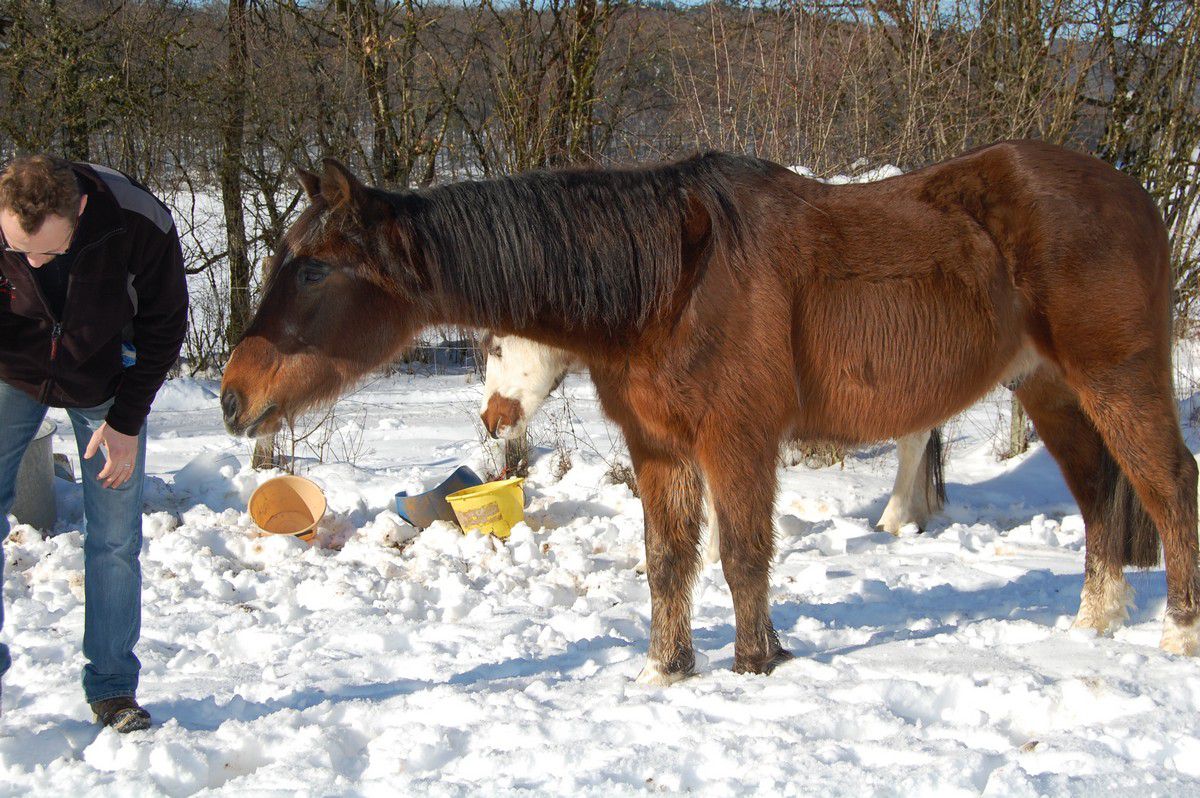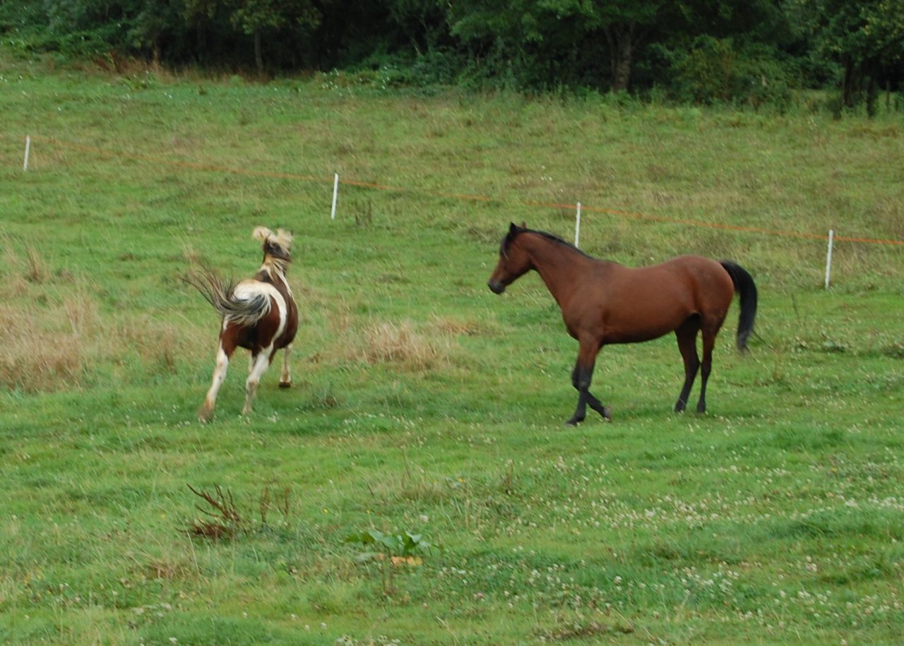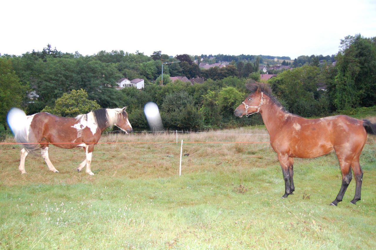 | la vie poursuit son cours... Athéna, une jument de 25ans qui est à adopter (voir le post dans le forum protection : Lien ) est venue rejoindre Paquita pour qu'elle ne soit pas toute seule. On lui cherche toujours une famille, mais en attendant elle profite de la bonne herbe que j'ai, et tient compagnie à ma future maman. ![]() le lendemain de son arrivée il y a 10 jours ![]() ce soir ![]() et un matin de la semaine dernière ![]() |