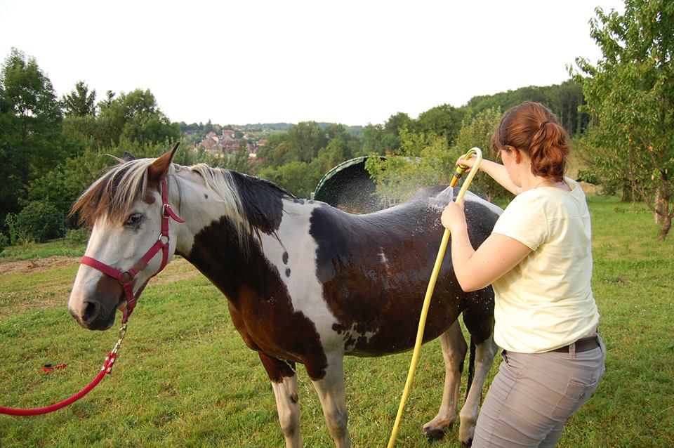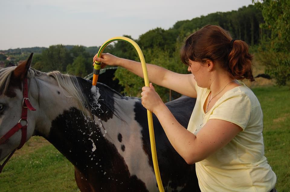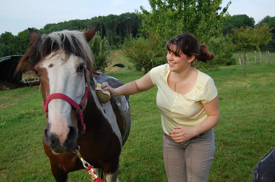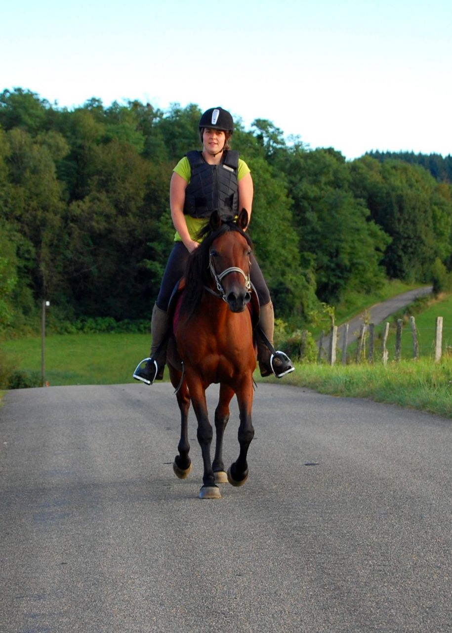| fourreau nickel ce soir, ca a vraiment bien dégonflé. Le traitement est fini depuis hier soir, j'appelle le véto demain, je vais voir avec lui s'il propose qu'on fasse une cure preventive tous les x mois, on verra bien. faut aussi que j'appelle le maréchal, y a vraiment besoin... depuis le temps que je le dis ! sinon, essai de paquita ce matin, coachée par une monitrice de formation, tres axée ethologie. on a travaillé les demandes d'arret et les depart au pas juste avec le bassin, sans toucher aux renes. j'avais juste le droit d'agir legerement sur le licol etho : si ca ne repondait pas avec le corps, je levais legerement la longe et elle stoppait net ! vraiment sympa ma Paquita Si bien qu'Eric (pas le mien, le proprio de la pension) a bien envie de la mettre à l'attelage ! ![]() |