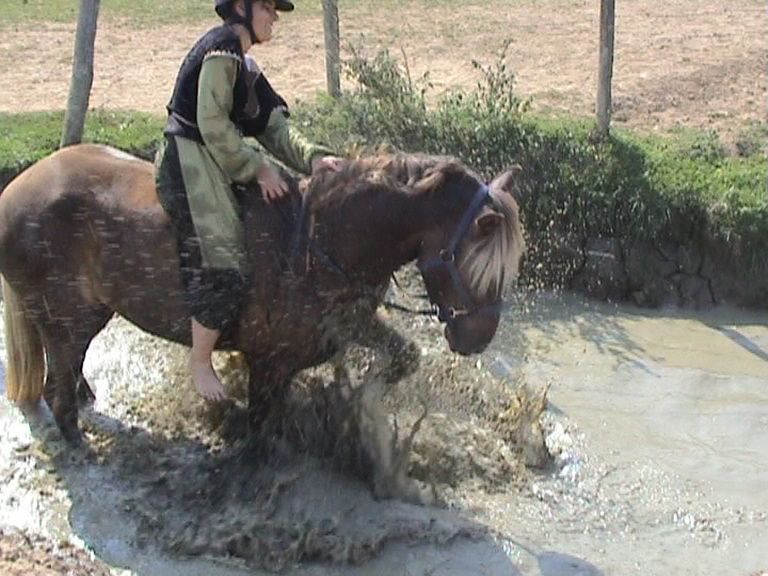 | Dire merci | Voici ma jument (enfin ponette ...) Pépète. Une ONC (avec du comptois), chocolat crins lavées de 5 ans. C'est un amour de jument que ce soit monter ou au pré (enfin ... sa dépend qui va l'attraper ! Il y a des gens qu'elle fuit !). Elle est très poyvalente vu que je fais tout ce qui me passe par la tête avec : dressage, saut, balade, TREC, voltige, ski-joering, liberté, longue-rêne ... ![]() |