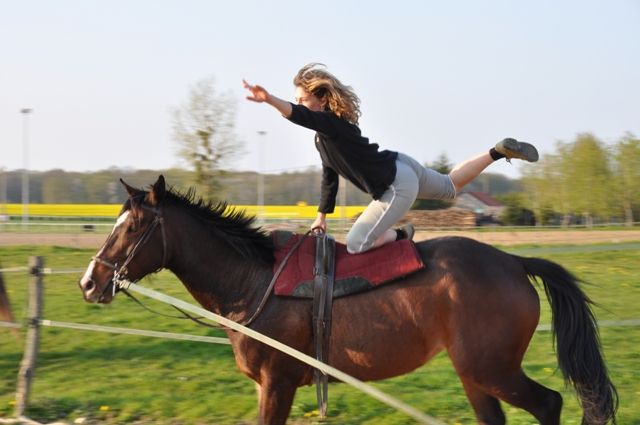 Déconnecté | Ben alors pas de réponse???! Alors petit comm de ma part: séance voltige sympa. Marie a bien progressé. elle prend confiance en elle et en la jument. Travail sur la coordination des mouvements, assouplissements. le liant avec Perle. Se détendre. "Marie, détend toi, relâche tes points de pied", la position du corps "Marie, recule tes épaules, bien assise sur les fesses, redresse toi". La détente "Marie, tape devant toi, sur la tête, sur les cuisses, devant, derrière". Et ça me donne des idées pour d'autres fois: fermer les yeux et savoir reconnaitre quand quel pied se pose! ![]() En plus on a remis ça ce week end. C'était extra! Perle est vraiment une excellente jument! Je crois que vous allez en prendre plein les yeux. Et je pense organiser des stages voltige! |