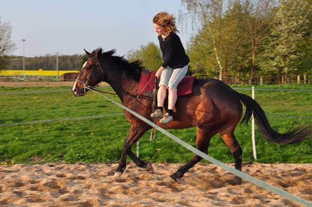 | Séance 7 : 5 avril 2010 Séance en carrière. J'ai travaillé au petit et moyen trot (c'était voulu). On a fait des cercles. Super séance .les photos suivront |
