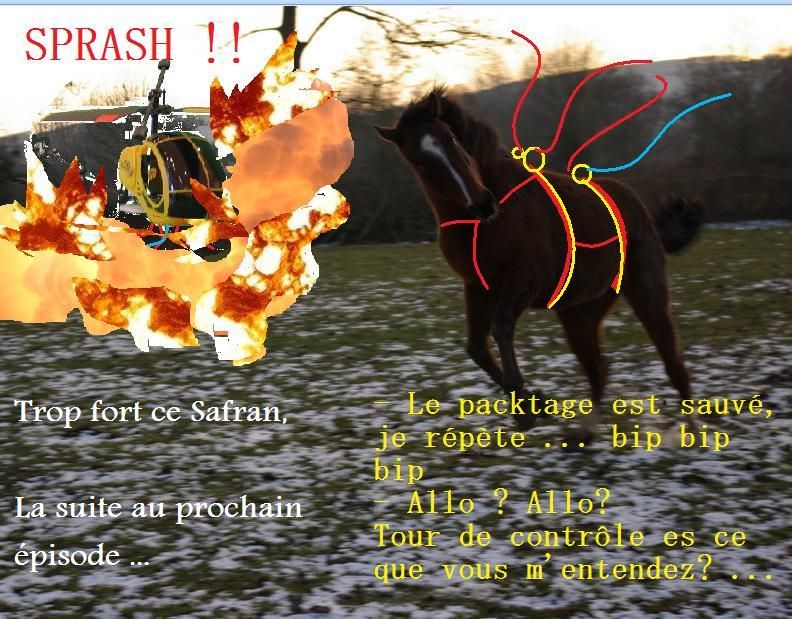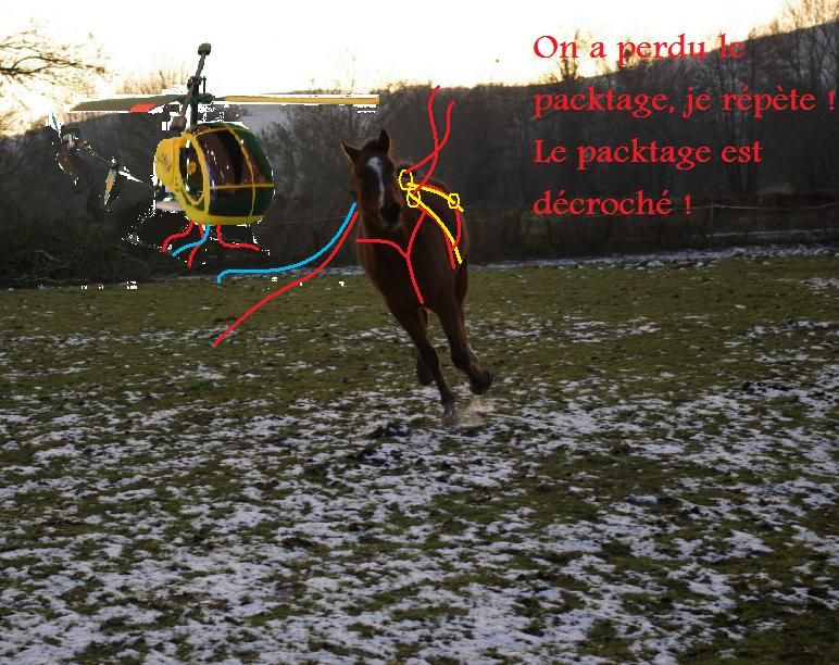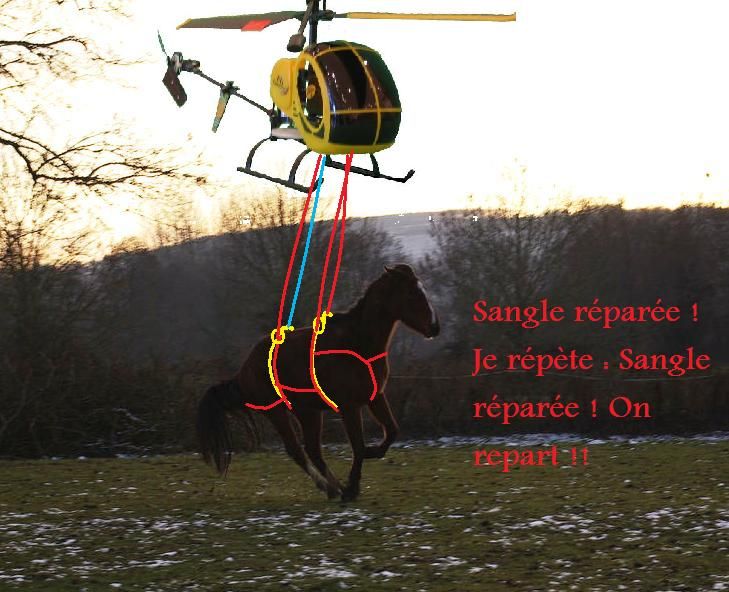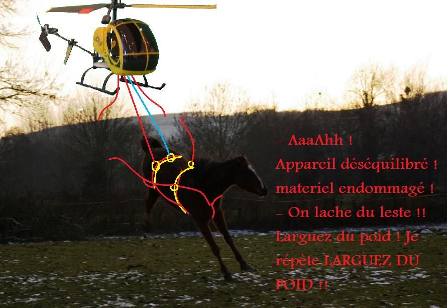 | Dire merci | aaahahaha sam28 ! pour ta percheronne, faudrait au moins 3 helicos d'plus !! ! Et un filet en dessous pour amortir une eventuelle chute !!! |