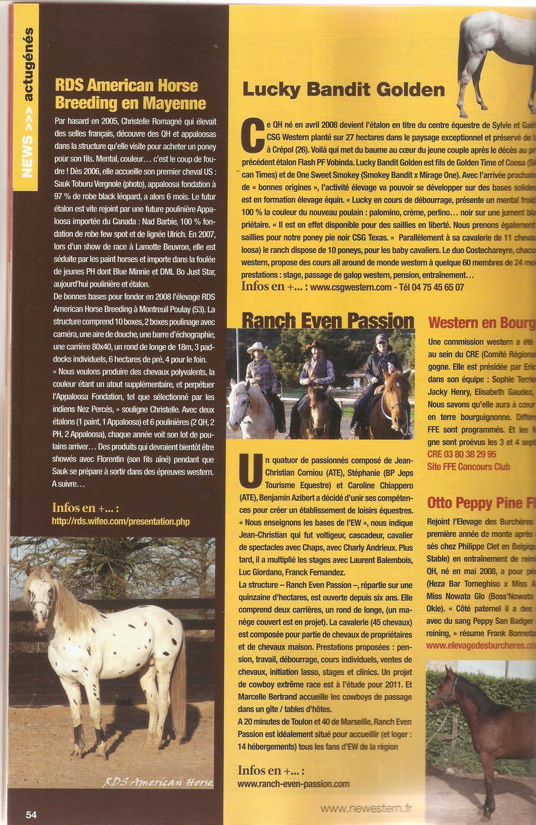 | Dire merci | L'élevage RDS American Horse Breeding est dans le magazine Newestern de ce mois-ci, voici l'article sur cet élevage de qualité:![]() |