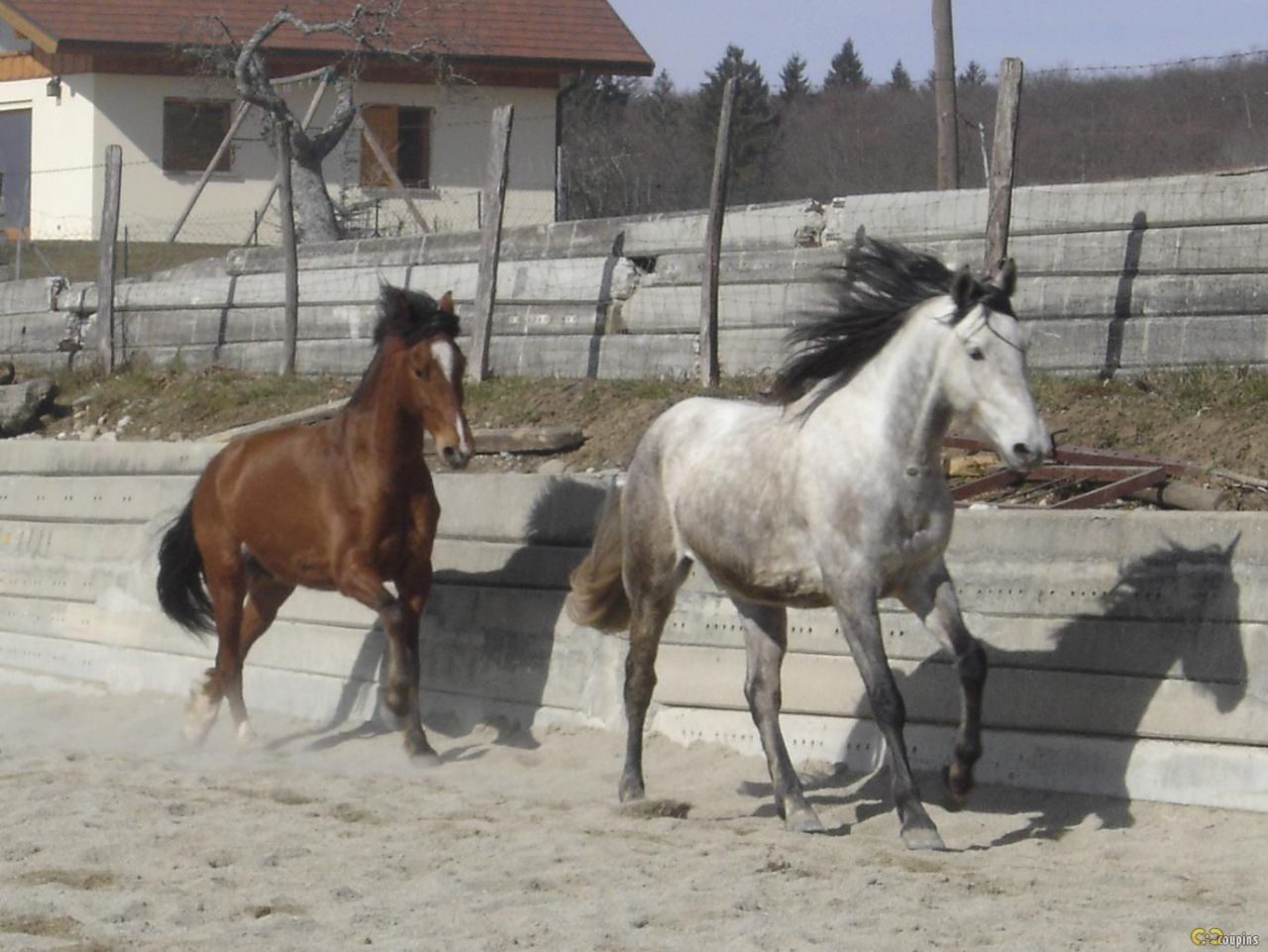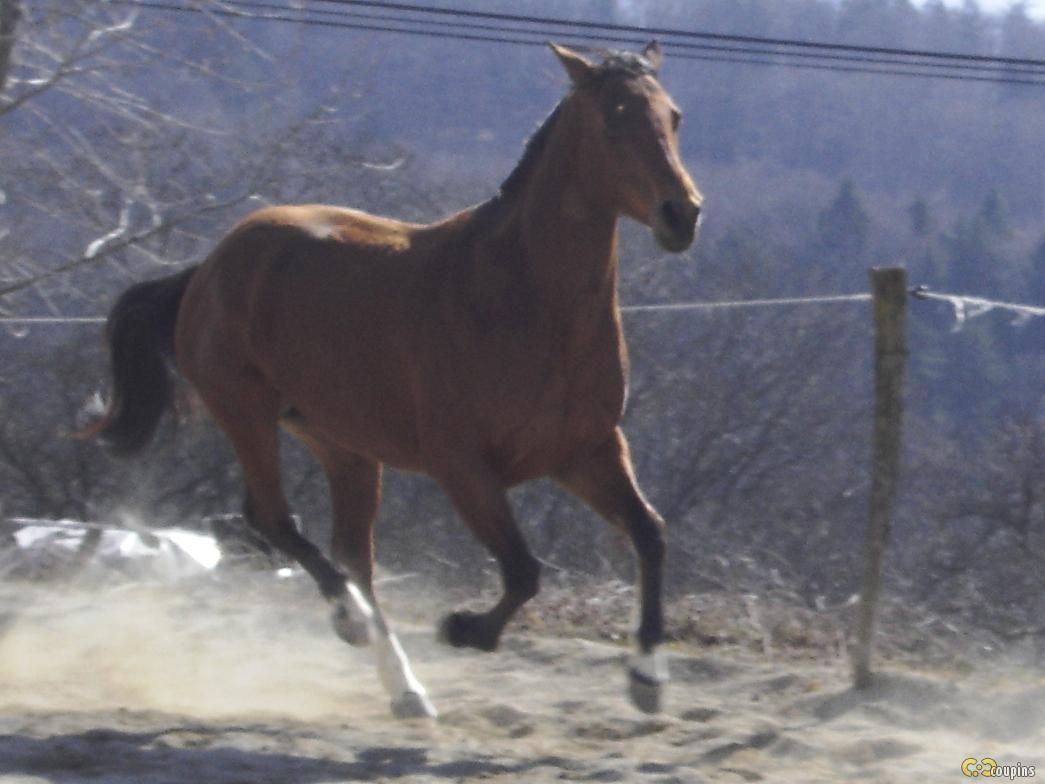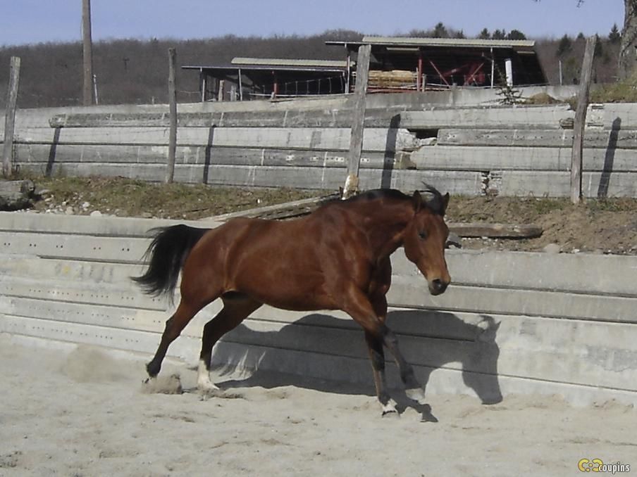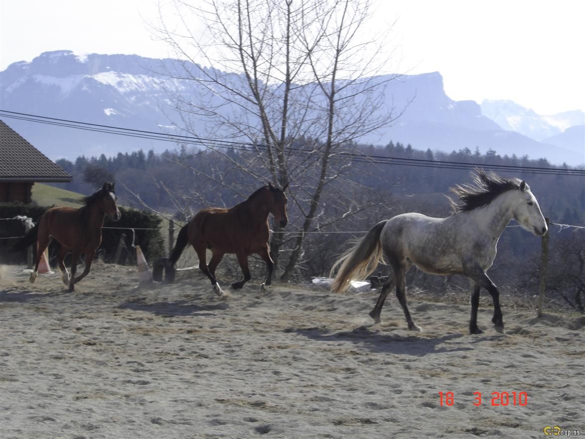 | Dire merci | Avant de pouvoir prendre des jolies photos des 3 inséparables au pré, voilà une série de photos d'un lâcher dans la carrière au soleil! Shyrka et Docdechoc, je vous laisse compléter avec plus de photos de Titan et Ricardo! Mon pur sang de course est laché!! ![]() ![]() ![]() ![]() Et que ça brille! ![]() ![]() Message édité le 19/03/10 à 13:17 |