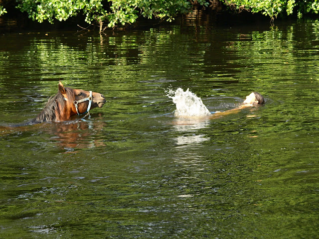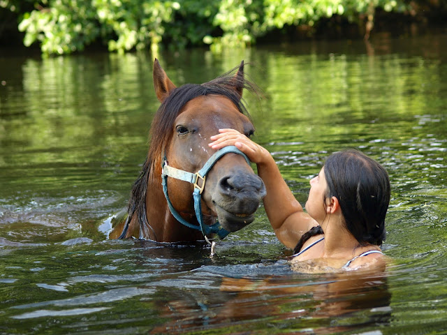 | Dire merci | Lilou ma jument pleine de 3 mois, son deuxième bain ! Approche : Et plouf ! C'est agréable ! Ma baleine ! ![]() Et séchage ! |
