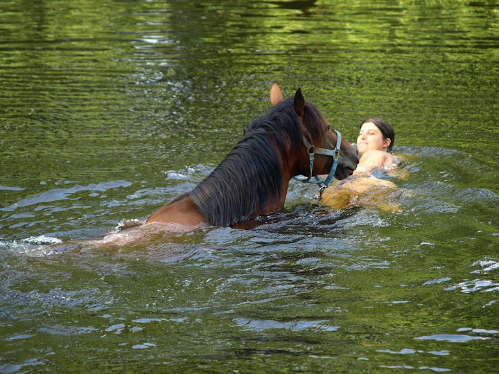 | Dire merci | Opige : ma jument a encore parfois du mal avec les flaques d'eau, si si ! Stephy : j'aime ma rivière, elle est superbe et très propre, c'est une des dernières en France qui acceuille des poissons sensibles à la pollution de l'eau ![]() Vanou, jess, Loustix et bulle : C'est toujours moon qui fait mes photos, elle est vraiment douée, ça fait des supers souvenirs ! |