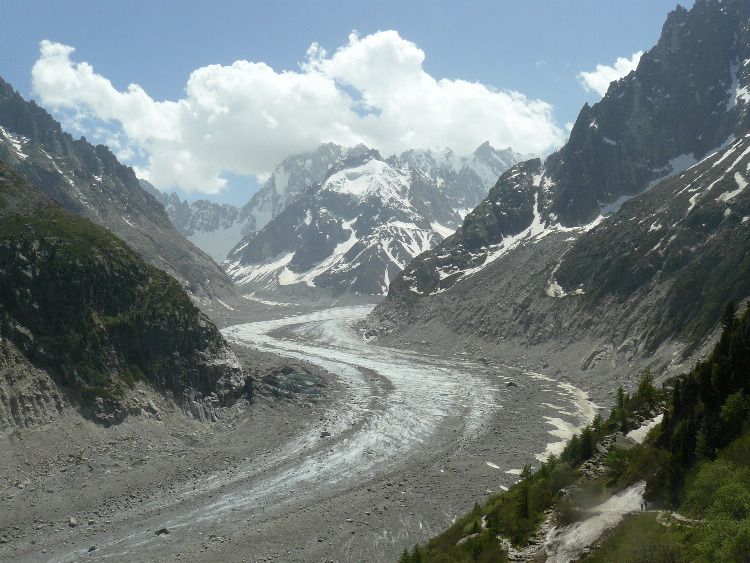 | Dire merci | laure , ne t'inquiete pas , tu aura de moins en moins froid en montagne , la derniere photo c'est la mer de glace il y a encore quelques années la glace etait en haut des moraines ou aujourd'hui on voit les pierres . |