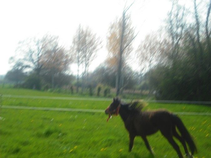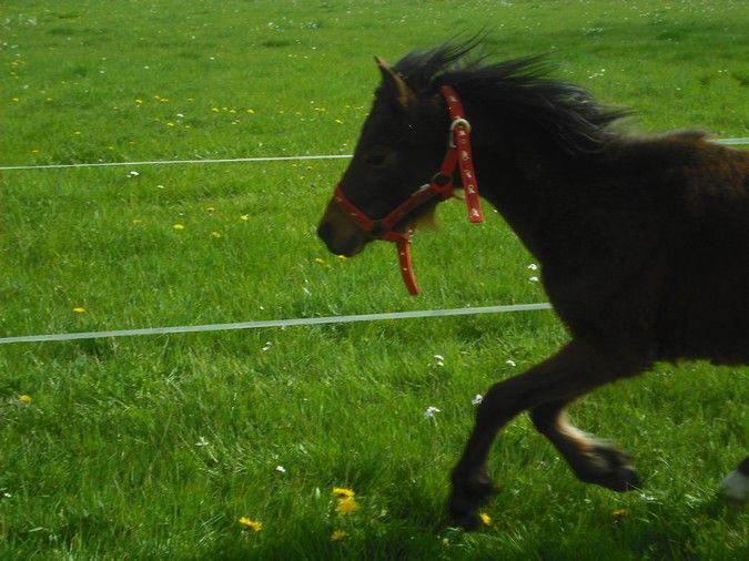 car j'était trop occupé pour prendre en "non-stop" j'ai du aider le poulinou a monter dans le van, bref une cata, ensuite on l'a laisser renifler le sol du van et il y est aller tous seul! comme un grand! qu'il est beau en arrivant a mon prés je l'ai lâcher, puis un ptit pipi par ci par là (faut faire son territoire )je l'ai fait galoper! c'est une "bête de course" mon welshou!!! (voir tof qui arriveront cet aprem, ou avec plus de chance une video )il est même inscrit aux concours, il pourra si je l'éduque au saut (il a un très bon cout de saut!) aller en concours! ou alors en "présentation" car il est typé welsh a 75% Spoiler