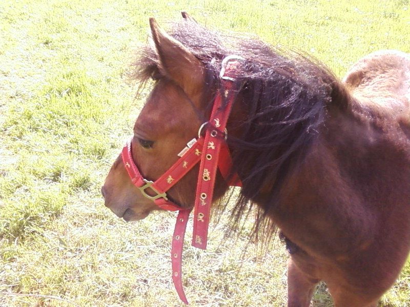 | Dire merci | Licol trop grand je sais xD en meme temps difficile de trouver sa taille car là c'est "pony" et du shetland c'est trop ptit![]() en faite c'est un corps de welsh avec une tete de shetland --' |