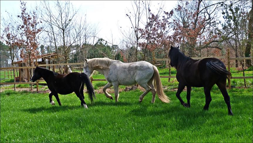 | Dire merci | Mais je mets quand même une petite photo des trois zozos pour ne pas faire de jaloux ![]() ![]() Tin est plus grand que L Do maintenant, il a pas mal changé lui aussi, il serait temps que je commence le débourrage, mais je risque de ne pas avoir le temps avant cet été... il va profiter encore un peu de l'insouscience de la jeunesse |