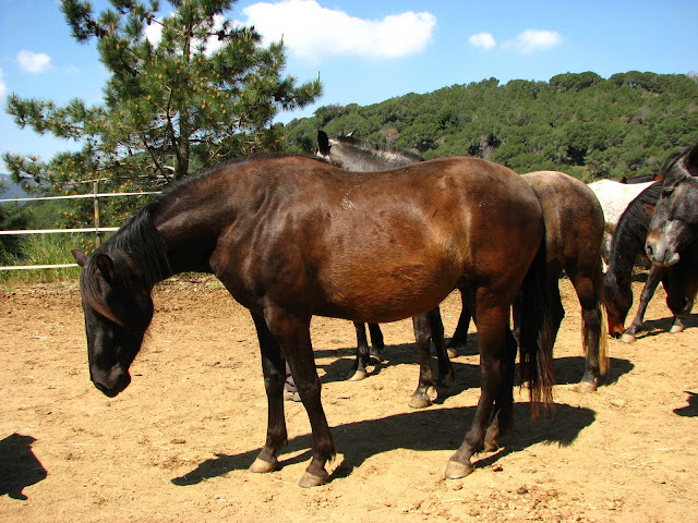 | Dire merci | YEGUADA FARRIOLS (je fais vite, jdois y aller) quasiment tous les poulains sont issus du même père, Niscalo, que je n'ai pas pu prendre en vidéo (il était flemmard ce jour-là il avait une jument à saillir et elle était trèèès open )un 4-5ans un jeune qui voulait qu'on vienne le caresser le papa, niscalo et niscalo-junior (autres photos de l'appareil de mon chéri, à suivre )un 7 ans, qui commence à travailler le piaffé, etc. (fils de niscalo, encore) (la bas les poulains sont débourrés à 4 ans et les pouliches saillies à 4 ans) *suite et fin* |
