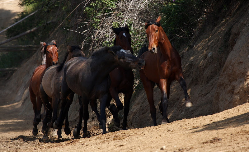 | Dire merci | syrius: ben les commentaires sur fogoso avaient été fortement appuyés par mon instructrice qui, elle, est très calée question morpho et allures (elle elle avait carrément détesté fogoso en vidéo). et cet élevage-là, c'est également mon instructrice qui m'a recommandé d'aller le voir car elle-même y a passé qq jours en mars dernier. Et certes l'étalon n'est pas le plus beau que j'ai pu voir, MAIS il a des qualités de reproducteur non négligeables, si on en croit ses produits, qui ont entre 3 semaines et 10 ans (ça donne quand meme un aperçu plus "stable" que fogoso qui n'a pas produit un seul poulain pour l'instant). après c'est clair que la photo ne le met VRAIMENT pas en valeur mais, comme dit, le terrain est en pente, l'angle de prise de vue pourri, bref, crois moi, il est déjà bien mieux en vrai, meme si c'est effectivement pas le plus bel étalon de ce week end. de toute façon, comme j'ai tout mon temps pour voir et choisir, jvais regarder tranquillement comment grandit Niscalo-junior, j'y retournerai probablement fin novembre en remontant du Maroc... bref, j'ai tout le temps ![]() en attendant que quelques vidéos (non montées malheureusement, problème d'ordi) chargent, 2 photos pour patienter un fils de niscalo, 3 ans un autre fils, 4 ans (terrain absolument affreux pour galoper, je suis étonnée qu'aucun ne soit tombé ) |