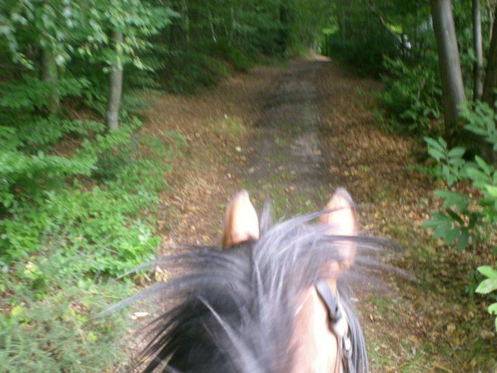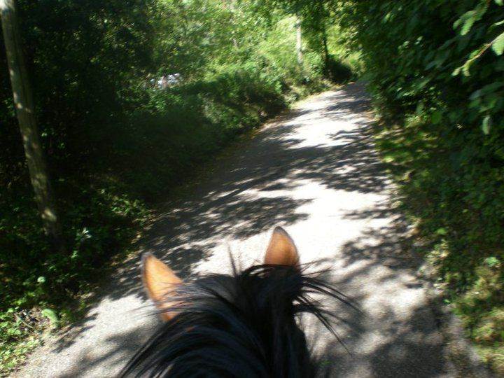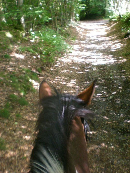 | Dire merci | De nouveau en vacances, je profite pleinement de santana, avec des ballades tous les 3-4 jours, qui dure environ 1h30, et tout va bien Ma belle soeur m'a accompagnée en ballade il y a 15 jours donc j'ai quelques photos à charger (pas en hackamore) et j'ai aussi fais quelques photos en ballade seule.... dans la soirée les photos arriveront... Je doute que vous soyez pressés... Je continue inlasablement mon monologue.... Mais au moins je fais des choses avec mon Gros, rien de tres intéressant pour le moment... Donnez moi 2-3 ans, que ma fille de 9 mois grandisse... Lui aura 7 ans, et là ce sera intéressant... Mais le peu que nous faisons et sa personalité d'entier me satisfait déjà pleinement!!!! |