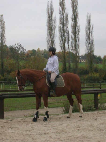 | Dire merci | Je suis de retour sur le fofo pour vous présenter le grand loulou qui m'est tombé entre les mains le 26 septembre dernier Donc voilà, Éros de son nom complet Éros de Jouy (pas de commentaires hein ) est un SF section A C'est un grand cheval d'1m75, alezan, et portant 4 balzanes haut chaussées. Il a eu une histoire pas si évidente que ça... Déjà tout jeune, il commence une carrière dans le CSO, qui le mène à de bons résultats dans de belles épreuves... puis il tombe entre les mains d'un sale homme qui le dégoute des obstacles au point qu'il ne veuille plus en franchir un... et la solution la plus simple pour lui était de l'envoyer à la boucherie. A l'époque c'était un jeune cheval fringuant et plein de sang, difficile et dangereux. Une dame pleine de bonne volonté le rachète et le mets en pension à Richeval, où je montais depuis toute petite. Sa nouvelle propriétaire avait peur de lui et refusait de le monter... puis, pas qu'elle ne veuille plus payer de pension mais par pur égoïsme, et elle était assez aisée (duchesse quand même), les enfants devaient aller a Harvard, alors le cheval il passe a la trappe et elle envisage de le mettre encore une fois au couteau, Pascale, gérante de la pension refuse et le rachète. Éros, après une année sabbatique me tombe entre les mains pour mon anniversaire, et nous voilà, avec une complicité à toute épreuve pour un cheval a qui personne ne donnait une chance, il me ressaute quelques barres, il est d'un calme a en faire palir plus d'un, et que j'aime plus que tout ! [url=https://www.1cheval.com/membre/services/photos/images/61021.jpg] ![]() [/url] Tous les deux on fait des câlins, du dressage, des bisoux, des jeux, du broutage, des bêtises, du plat, des balades... |