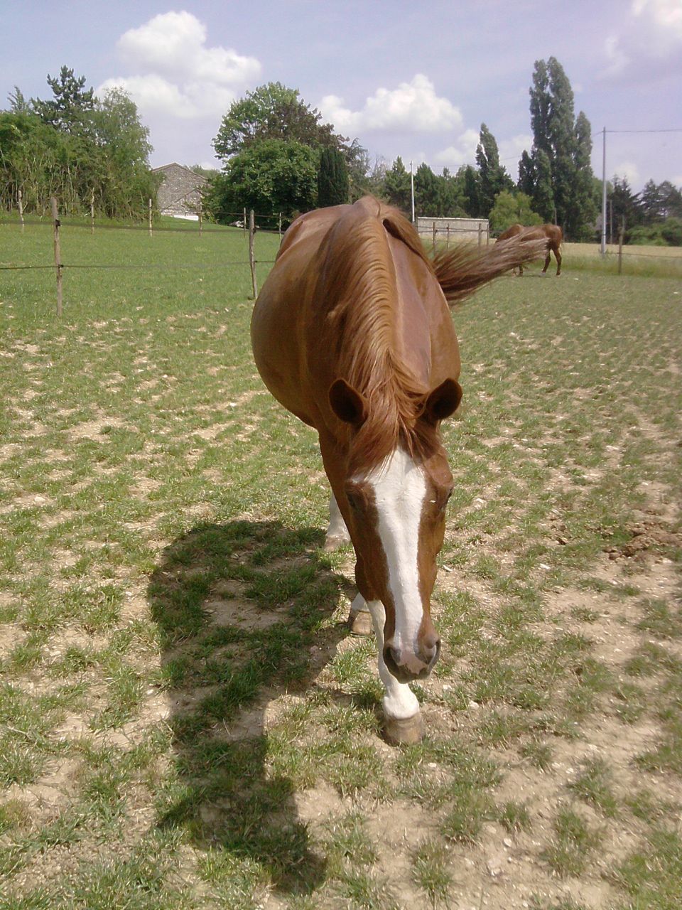 | Dire merci | Lulu, merci ça me touche ! C'est adorable et merci pour lui !Sinon aujourd'hui, petite carrière vraiment très très chouette, un super cheval en avant, moi qui me suis étonnée moi-même de ma position et de ma fixité... que du positif ! et puis, *pause nian nian (faut bien!)* grande premiere, c'est la première fois que je ramène Eros du pré en liberté ! Il y a quelques mois on devait être plusieurs pour l'attraper et c'était même pas imaginable de lui mettre la longe sur l'encolure quelques secondes, il se taillait... Je suis fière de nous et notre évolution ! |