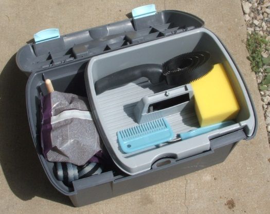 | Dire merci | Tu as tout le kit d'une vraie petite nouvelle cavalière Moi j'ai abandonné la boite depuis un longggggg moment déjà, ça m'enerver de devoir tout ranger dans le bon ordre pour pourvoir fermer. Du coup quand j'étais encore en club j'avais opter pour un gros sac de sport/voyage ou tout loger vite fait bien fait et pour les concours zou tout dedans !! Parfait ! Maintenant que j'ai Queen j'ai un sot et pareil tout dedans en un coup de main et ça coute beaucoup moins cher qu'une boite en plus et je peux entasser filet, collier de chasse dedans pour faire qu'un seul voyage de la sellerie à l'attache |