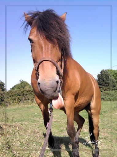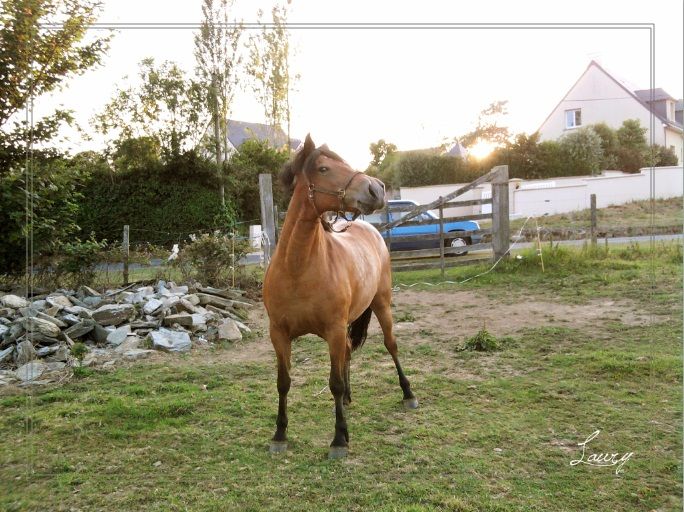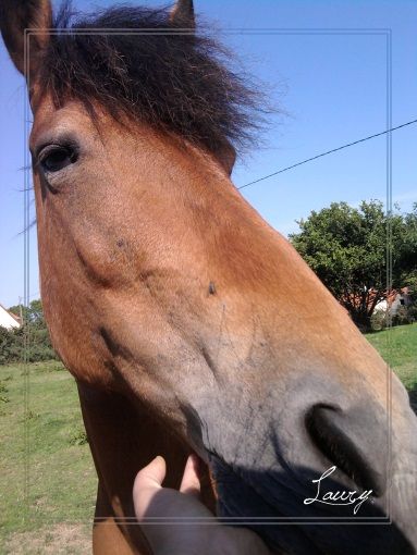 | Dire merci | Taadaaamm ! Yé soui allée voir ma youyoute today, j'avais dit qu'hier je prendrais des photos, mais j'ai légèrement oublié l'APN, MAIS !! aujourd'hui j'en ai fait plein !! Je lui ai essayé ma selle américaine, alors, arrivée au moment de sangler, je me suis dit " ah mais au fait, comment que ça se met ces trucs la "du coup, j'ai fait ce que je pensais le plus logique, mais pour ceux qui savent installer ces bêtes la, dites moi donc tout ce qu'il faut savoir pour le sanglage et tout et tout. Ah et puis, je lui ai mis un filet qu'on m'a offert il y'a longtemps, je m'en servais pas par ce qu'à la base, il avait une muserole croisée, mais elle était bien trop grande pour mon bichou, alors je l'ai enlevée et je trouve qu'il lui va pas mal, à part qu'il parait réglé trop court sur les photos, mais en vrai il me parraissait bien ![]() Bref, place aux photos ![]() A mon arrivée : ma Crabouille se la joue vendeuse de Pizza derrière son comptoir " Momo Pizza Bonjour Mamzelle, qu'es ce que je vous sert ? " ![]() Poney mal peigné, visiblement endormie par la chaleur pesante d'aujourd'hui ![]() ![]() Première tentative d'évasion ... ![]() Elle fonce du cul Elle faisait pas ça les autres années à la fin de la mue !![]() Un cul ![]() ![]() 2ème tentative d'évasion ... non non non bichou !![]() Maaiiiis Môman, fait trop chaud, laisse moi tranquilleuuuu ![]() ![]() |