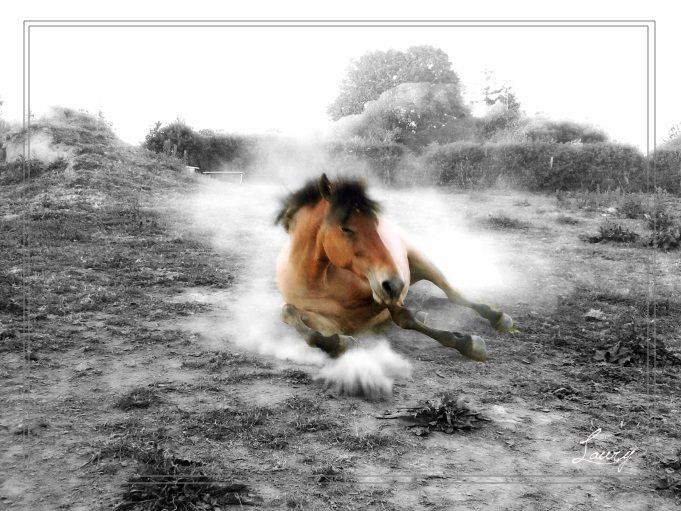 | Dire merci | Deux trois photos de ma fille d'amour ^^ La preuve en image : Bichou monte dans les vans ^^! (remarquez comme elle est paniquée ... )![]() Bichou se roule !! ![]() ![]() Fait voler la poussière !! ![]() Et se relève fièrement ^^ ![]() Puis, pendant la séance de longe ce soir... Bichou se met à jouer ^^! alors je lache la bête !! L'animal se met à cabrer, courir partout, faire des bons, sauter par dessus un tronc, hennir, ronfler, soufler, faire l'étalon, rolkuriser, et forcément ... j'avais que mon portable, et ... plus de baterie J'ai loupé des millions de magnifiques photos, trop deg ![]() J'ai réussi à en prendre deux avant que mon portable s'éteigne ... ![]() ![]() Je la trouve trop belle sur la dernière, elle m'a ressorti ses allures de fous (qu'on ne voit d'ailleur pas bien) ça faisait longtemps, je me suis remise à baver devant ma jument en me disant "waaoooo c'est la mienne " |