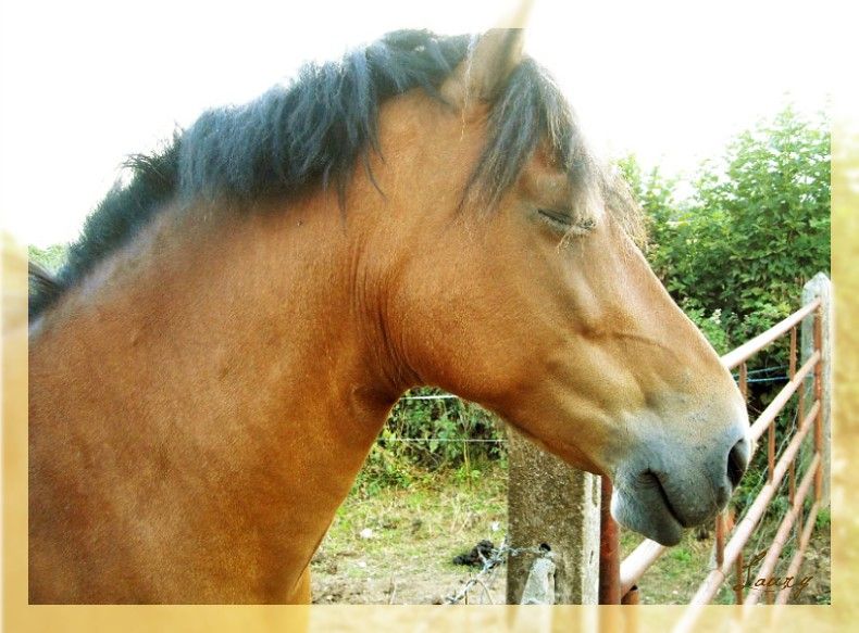 | Dire merci | Bichou va très bien, elle est avec ses potes, elle est tranquille, en ce moment je fait pas grand chose avec elle, ça lui déplait pas, elle fait sa vie de chewal, c'est la fête quoi Quelques petites photos ![]() Rhuummm ch'est boooon ![]() Gnéééé ![]() Opale, Opale masquée ohé ohé ![]() Nan mais cette encolure quoi ![]() Elle fait presque un peu plus grande sur celle la ![]() ![]() Crabouille ... et son horriiiiible crinière ![]() ![]() |
