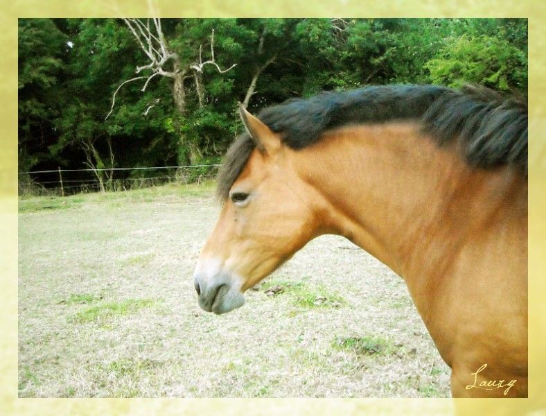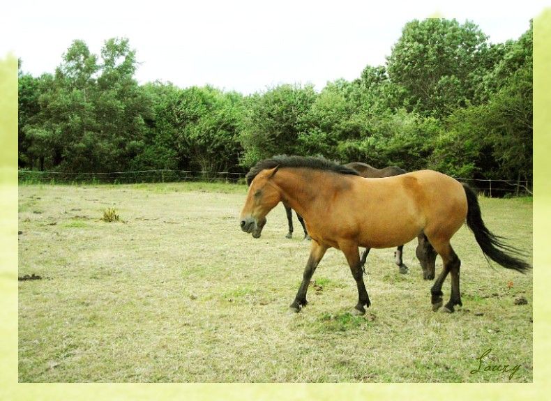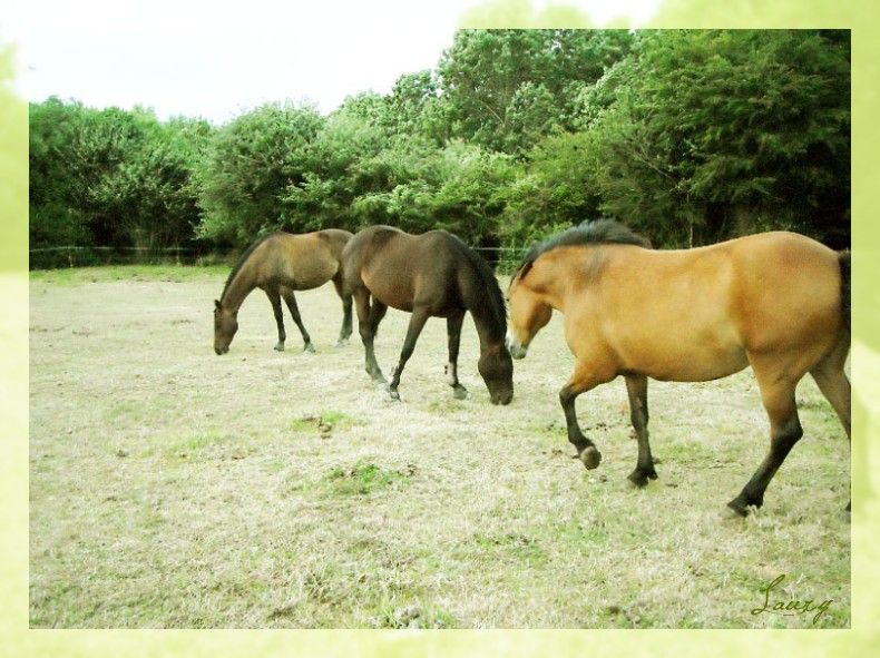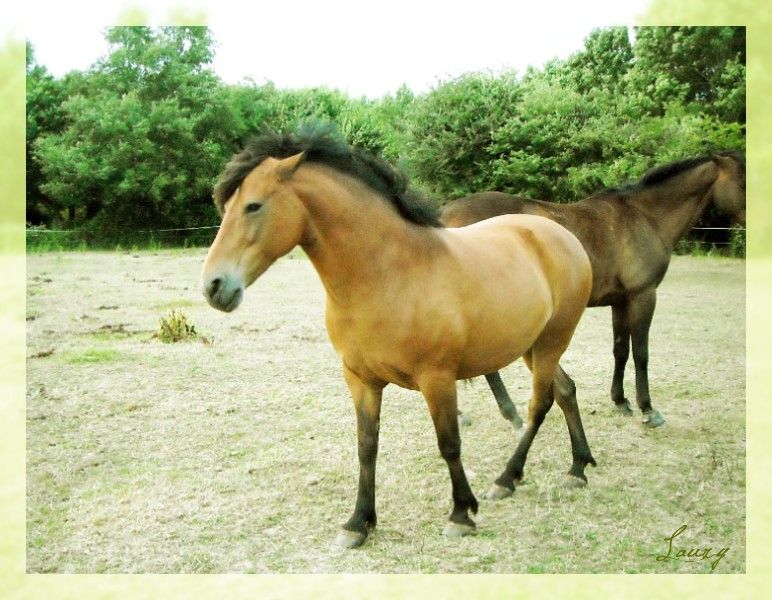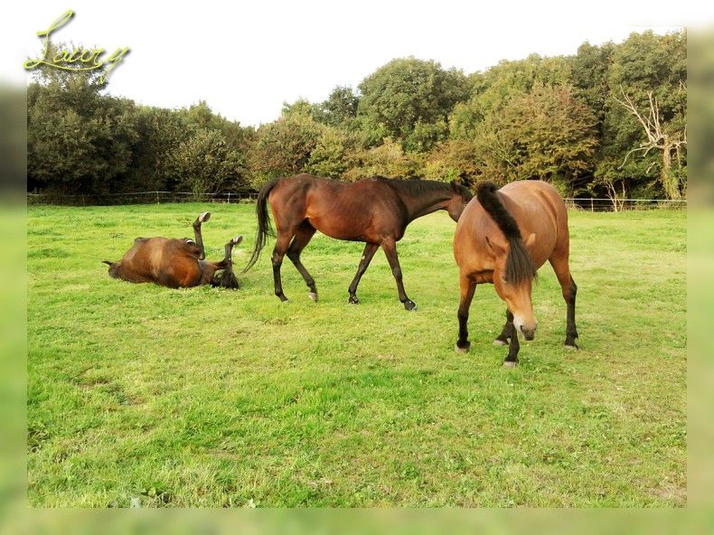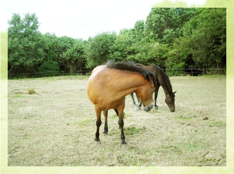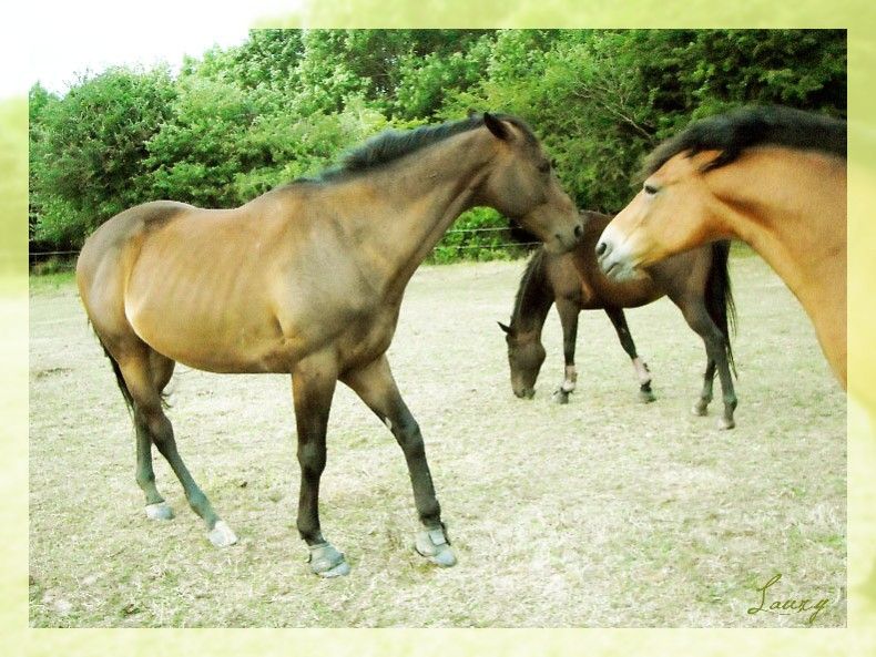 | Dire merci | En y réfléchissant, c'est vrai que Blacky Star ça fait un peu nian nian comme tu dit zorose ...Bon, je le garde sous le coude quand même au cas ou ^^ Sinon, des news, Bichou à changé de champ, elle est toujours avec ses copains, c'est guinguette dans le pré, les deux gros se sont lacérés les paturons dans du barbelé, (qu'on avait pas vu... mais qu'ils ont trouvé ... eux ) et Bichou, poney rustique, bi plus solide qu'un PS, même ayant fait joujou aussi dans les barbelés n'a eu qu'une mini égratignure ! Rha, je la surkiff quand même ma minoude ^^! Et puis, quelques nouvelles photos de l'étalon, que j'ai trouvé sur un autre forum ou il a son post ^^!! ![]() ![]() ![]() ![]() ![]() Je regrette vraiment pas d'avoir fait saillir Opale avec lui ... ![]() Il a donc maintenant 2 ans !! ![]() |