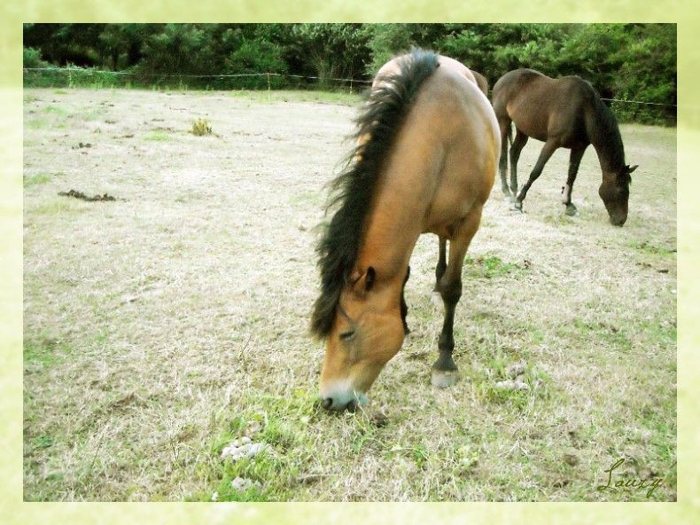 | Dire merci | garriguev : Oooohh oui !! vivement l'année prochaine ^^!! j'espère qu'il sera beau, il n'y a pas de raison qu'il soit moche, mais on espère toujours que ça sera le plus beau ![]() Zorose : n'est-ce pas ! ^^ et il a que deux ans, j'imagine même pas quand il en aura 3 ou 4 Bon, aller, quelques photos d'aujourd'hui : Comme je vous disais, c'est guinguette dans le pré ... Quel joyeux bordel ![]() Bichou ![]() Cheval sans queue ![]() ![]() ![]() Faudrait surtout pas relever la tête du sol, des fois que tous les brins d'herbe s'échappent ... ![]() Et en prime, quelques photos de la plage chez moi, j'adore les couleurs à la fin de l'été... ![]() J'en profite pour vous présenter mon petit fien ^^! Happy, petite rescapée de la SPA!! En mode cheveux au vent, un peu la tête en broussaille ![]() Et une petite dernière, de la mer... ![]() Ah et ça y'est, on en est aujourd'hui à 4 mois tout pile de gestation |