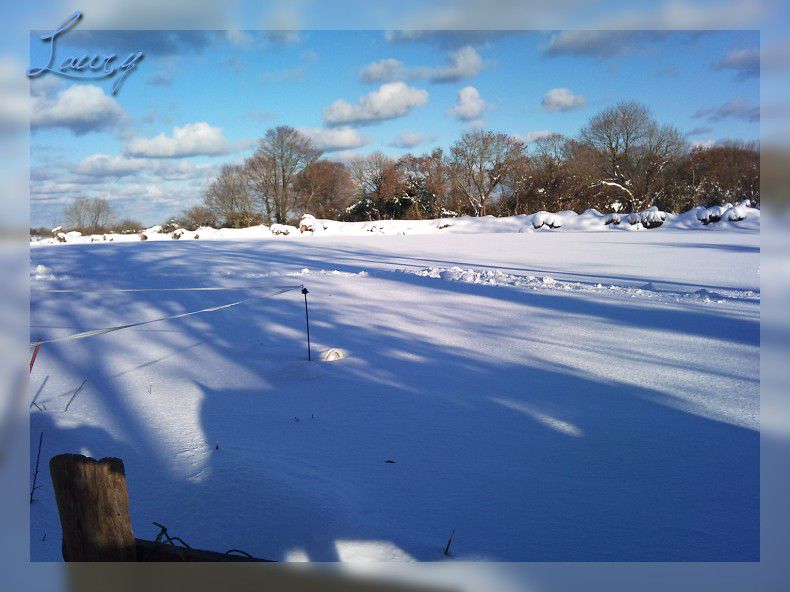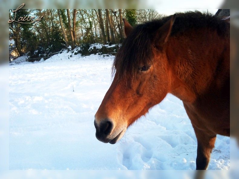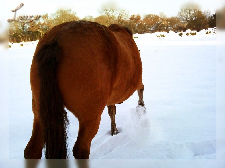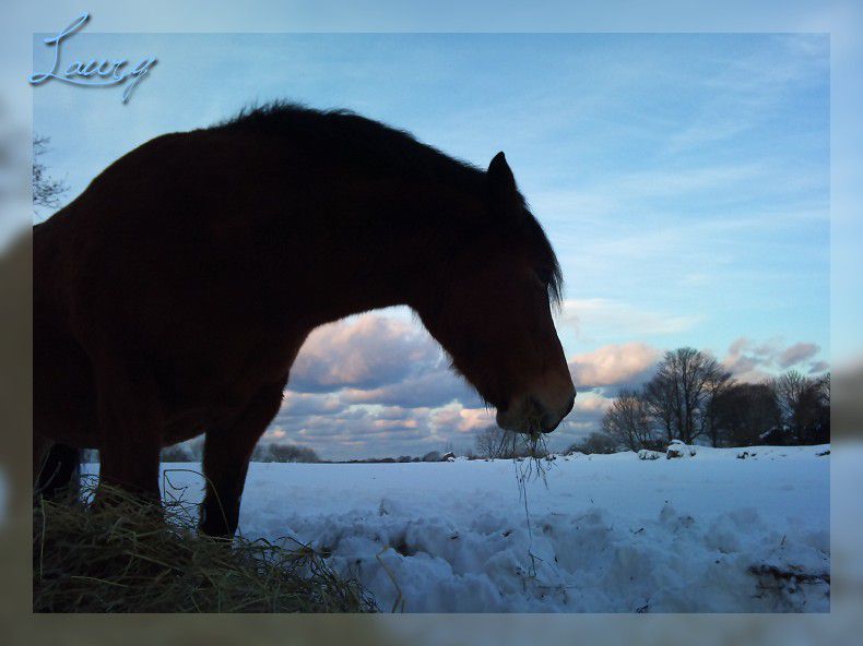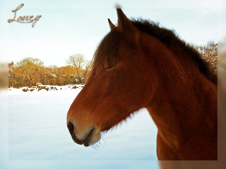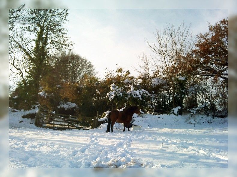 | Dire merci | Bon, je suis allée voir Bichou cet aprem, alors la neige c'est de pire en pire, et la ça ne me fait plus rire du tout ![]() On a réussi à se frayer un chemin en voiture avec mon père, ça n'a pas été de la tarte, alors, presque arrivés au champ, on a du se garer par ce que c'était plus possible, du coup je fini la route à pied avec mon seau de grain, je vois ma louloute la tête par dessus la haie en contre-haut, je lance un joyeux "boonjouuuur ma louloute", j'accélère le pas, heureuse de pouvoir faire un ro bisou à ma fifille, et puis, la, j'arrive devant l'entrée du champ, et je vois Bichou, la neige jusqu'au ventre ... Moi en mode panique, j'avais jamais vu ça de ma vie, autant de neige par chez nous c'est du jamais vu. *** suite |