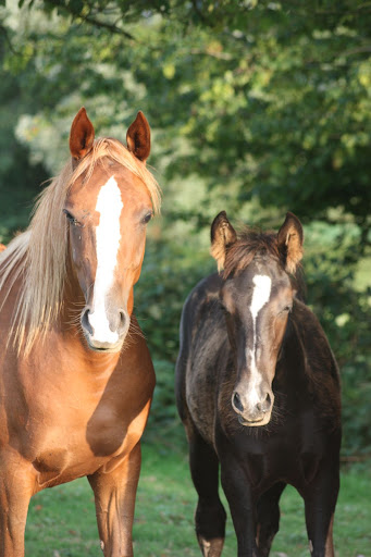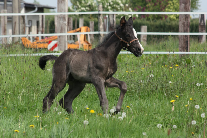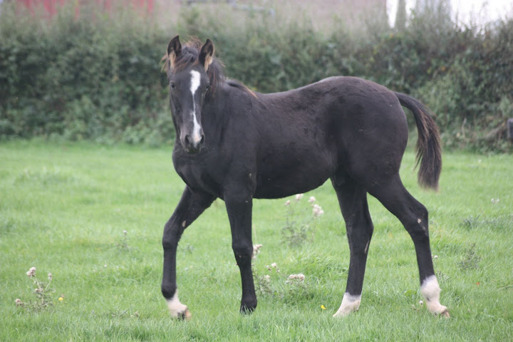 | Dire merci | Sortie hier un peu à l'herbe... Eh bien ce fut folklorique.... Ce jeune homme ne suivait absolument pas sa mère..... et boudin qui me tournait autour en hennissant après son rejeton qui partait dans la direction opposée... Une fois arrivés dans le paddock où je n'avais pas mis le jus.. All Black la terreur à commencer à tirer sur le ruban.... une vrai machine à conneries ce noiraud.... Par contre il a très fière allure lorsqu'il trotte et il est plein d'énergie....Si le temps se lève aujourd'hui je referai une petite sortie mais cette fois y'en a un qui va avoir une drôle de surprise... ![]() |
