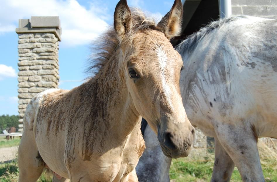 | Dire merci | La naissance de A débute par un peu de mathematique... 2000 km pour rejoindre le bel altair, 3 sauts, 2 échographies, 11 mois d'attente, 11 jours de veilles interminable et très certainement 30 ans de complicité ( je l'espère..) Il est donc né à minuit 30 le 17 mai 2010. Le poulinage fut très facile, minuit, je la vois manger son foin avec frénésie,minuit vingt elle tourne en rond, se couche, ca y'est la poche des eaux est rompu... en 7minutes top chrono il est dehors ! Je l'aide a rompre la poche et attend patiemment que miss Isabelle ( tout de même fatiguée...) daigne se relever pour admirer sa progéniture. Âpres quelques couinements d'etonemment, elle le sèche puis il tente de se relever, non sans mal car le pauvre se cognait partout, je lui file donc un petit coup de main... Seulement 2h30 après il trouve ENFIN( j'étais un peu paniquée... ) le chemin de la mamelle... Je lui donne ses petites vitamines, désinfecte le cordon, surveille 2 bonnes heures et je vais me coucher.A 7h00 je lui fais ses sérums ( c'est vif c'est petite bête la !! Ça cabre et ca rue Place aux photos Isabelle 14 ans, ONC mais demi trait ![]() Vic altair ![]() et la petite merveille, un joli male blancket isabelle ! ![]() |