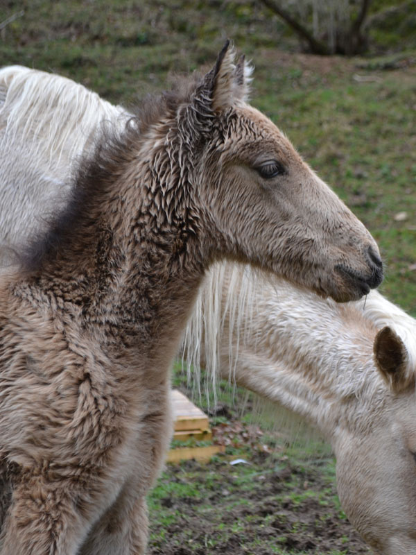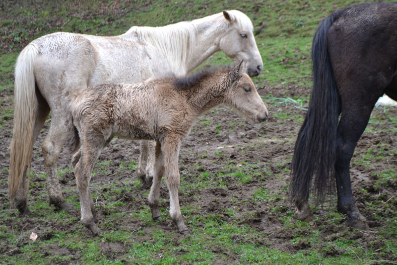 | Dire merci | Notre premier poulain de l'année est né ! On attendait celui de Querida, mais c'est Tamara qui a doublé tout le monde ! Voici donc notre joli premier petit bout, demi sang kabarde (maman OI), à son tout premier jour : ![]() ![]() ![]() |