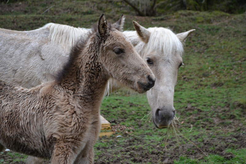 | Dire merci | Hihi, oui, un poulain de février né en montagne... il est sorti avec la doudoune intégrée ! |