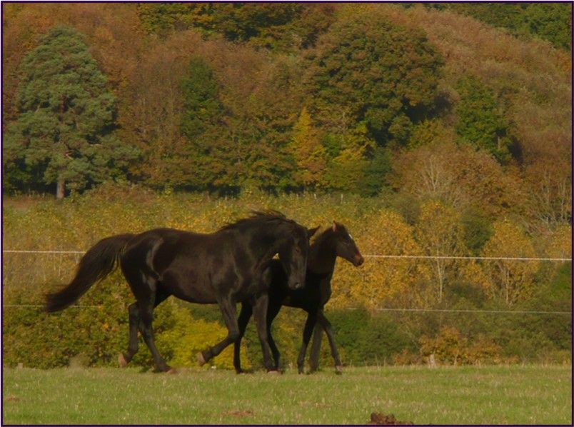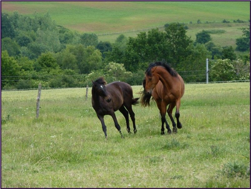 | Dire merci | *************** Velvet Moon du Lié *************** Cette page sera consacrée à Velvet Moon du Lié ![]() Par Quite Easy 958 et Kaïma d’Argouges (X Voltaire). J’ai eu le bonheur d’assister à son poulinage l’année dernière ![]() Elle a passé l’hiver avec les autres poulains, tous mâles et certains devenant entreprenant ( ), elle partage désormais le pré de Kirikou, Hégérie, Typhon, Toscane et Talinn ![]() Le commencement : Lien |