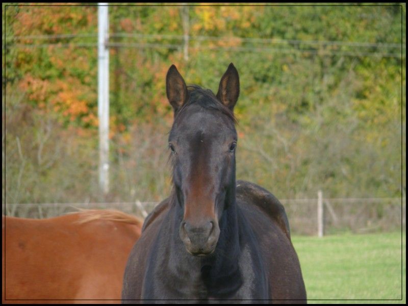 | Dire merci | ************************ Les chevaux du Lié – 2010 ************************ Vu qu’il y a quelques personnes sur ce forum (juligi, tite lizou 723, Alex_isis, etc.) qui connaissent Galeor, je me suis dit que ce serait sympa de vous donner des nouvelles de ses « grosses bêtes » et de leurs « grosses bêtes miniatures » ![]() Autant commencer par le début et vous présenter les mamans : Kaïma d’Argouges, SF, la chef du troupeau. Elle mène tout son petit monde à la baguette et mate toutes tentative de rébellion à coup d’oreilles couchées et de regards noirs. Elle n’a pas été remplie l’année dernière mais est pleine de Diamant de Sémilly pour l’année prochaine. ![]() Sa fille, Qualista du Lié, SF, également poulinière cette année mais qui repart au boulot dès que sa pouliche sera sevrée ! ![]() Talinn du Lié, SF, fille de Qualista du Lié et donc petite-fille de Kaïma. Saillie par Quick Star pour l’année prochaine. ![]() Nirvana du Very, SF, qui a donné naissance cette année à un petit poulain fier de lui, Aragon du Lié. Elle est (ou devrait être) pleine de Quick Star pour l’année prochaine. ![]() Habanera des Isles, SF, laissée vide l’année dernière, elle est pleine de Quick Star pour 2011. ![]() Backrow, la toute dernière arrivée, pur-sang de course. Sa pouliche 2010 (I’ll be back) est déjà née et elle attend un poulain pour 2011. ![]() |