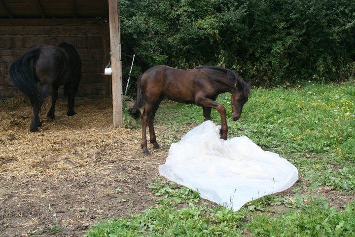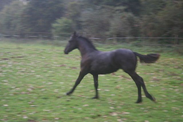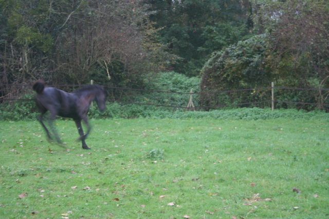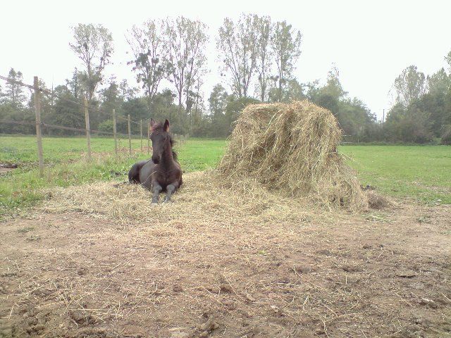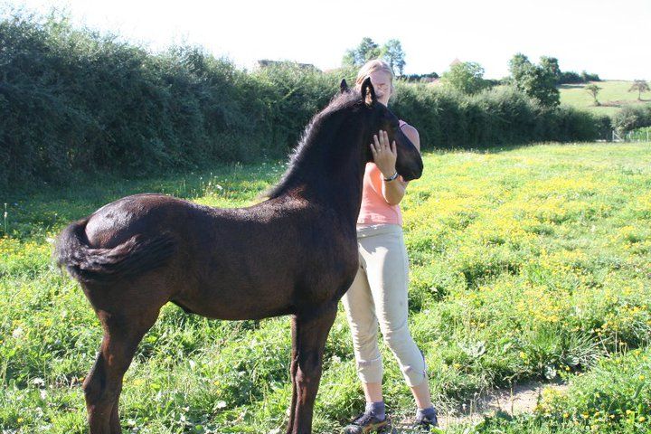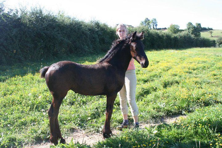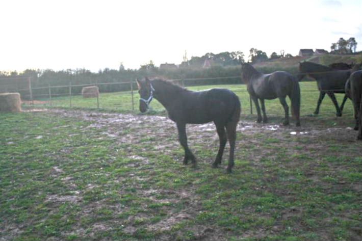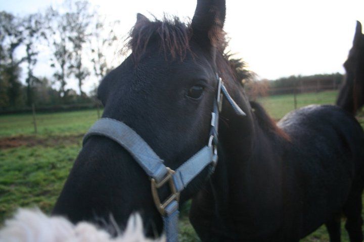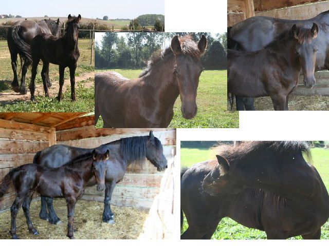 | Dire merci | Voici de nouvelles photos de ce matin prise par Kris, Gadys grandit tellement vite, je la trouve changé à chaque fois, elle est bien noire, les bouts des crins roux (trop chou) son toupet a bien poussé et ses gambettes aussi. Dans un mois elle sera à la maison ... |