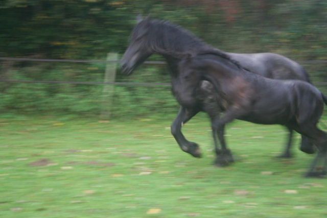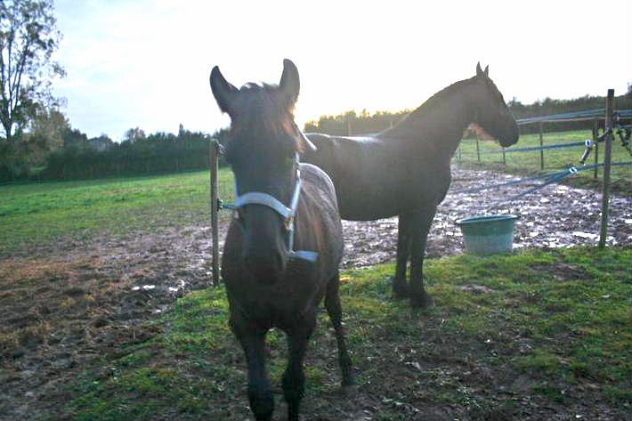 | Dire merci | Nouveau post pour ma petite dernière, je reprends sa présentation, Gladys de St Jean, pouliche frisonne OC née le 18 mai 2010 en Auvergne, sa mère Ditské van den Schanschreide jument "ster" 1.63 m et son père Jalmar du Rial, étalon frison non approuvé 1.65 m, elle arrive chez nous en fin novembre, début décembre. Notre première rencontre se fera le 06 juillet. ![]() |