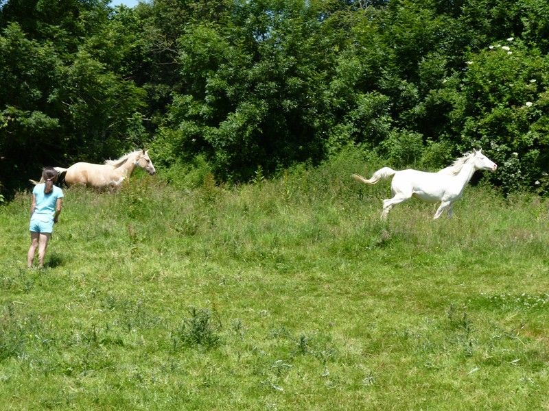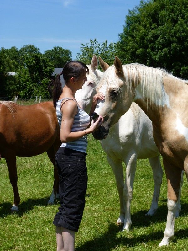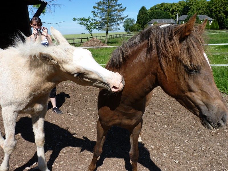 | Dire merci | On continue dans le pré des juments / poulains: Léna et son poulain Adagio, Vitamine, le "bébé tondeuse" et le poney...(désolée BCA, j'ai pas pu m'empêcher )Vue d'ensemble ![]() On est repérées par ADAGIO ![]() ![]() NOMADE, elle dort et elle n'a pas vraiment envie de venir dire bonjour... ![]() ADAGIO aime les bisous et n'hésite pas à réclamer ![]() ![]() ![]() Du coup, Lizou s'y colle (vous noterez quelle corvée ça à l'air de représenter pour elle )![]() "Et toi, t'en fais des bisous?" ![]() GNÉ ![]() Puis BCA nous montre combien son ADAGIO est farouche ![]() ![]() |