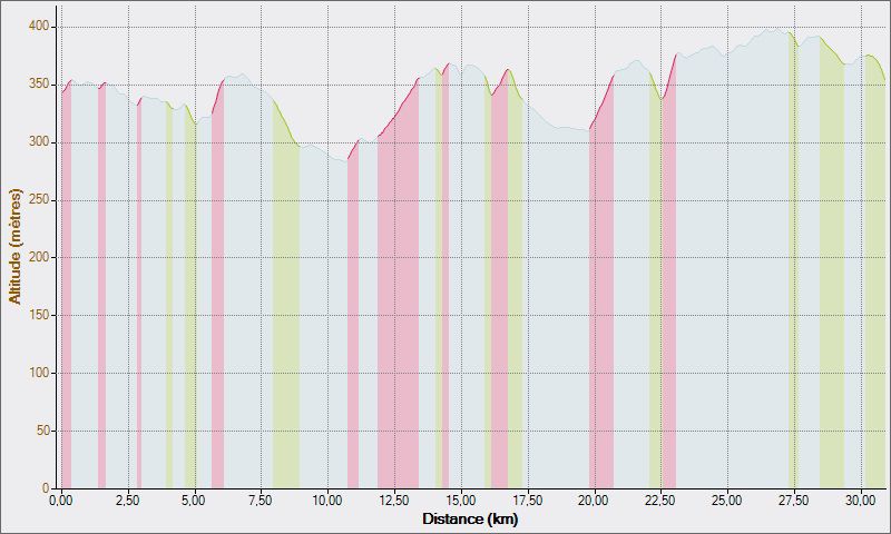 | Dire merci | finalement il y a un peu plus de 300m de grimpette quand même point de vue dénivellé je la trouvais pas mal en fait : pas trop mais quand même un peu ça manquait de belles longues galopades (à part avant d'arriver au pont) |