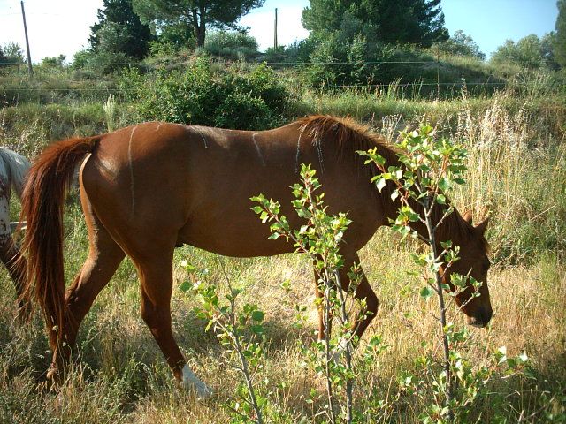 | Dire merci | C'est un cheval qui est désormais montable par tout cavalier ayant un peu d'expérience et même par tout débutant qui ne dépasse pas le trot, il est très intelligent et apprend très vite. J'en parle comme si on allait le vendre...et bien non, il ne sera jamais vendu sinon ma fille ainée m'arrache les yeux...de toutes façons, il est à elle... ![]() et s'il est désormais extra, c'est parce qu'il a dépassé les 7 ans (7 ans pour mon pire ennemi, 7 ans pour moi...etc...) ![]() |