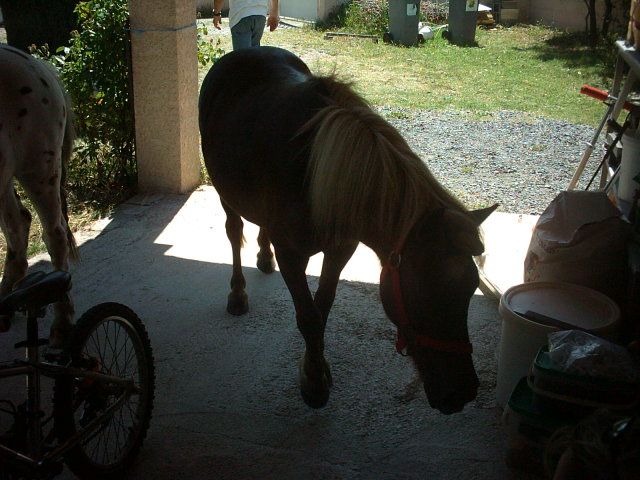 | Dire merci | Alors, revenons à nos moutons...que dis-je, à nos chevaux... Donc je racontais qu'on avait 7 dadous dont 6 à la maison... Le premier, Brighton est un quarter-arabe arrivé en 2004 ce me semble. D'abord monté classique par Julie, mon ainée qui a le galop 7, finalement j'ai réussi à la convertir à la selle western et même à la monte qui va avec (ce ne fut pas sans mal...) : les débuts : ![]() |