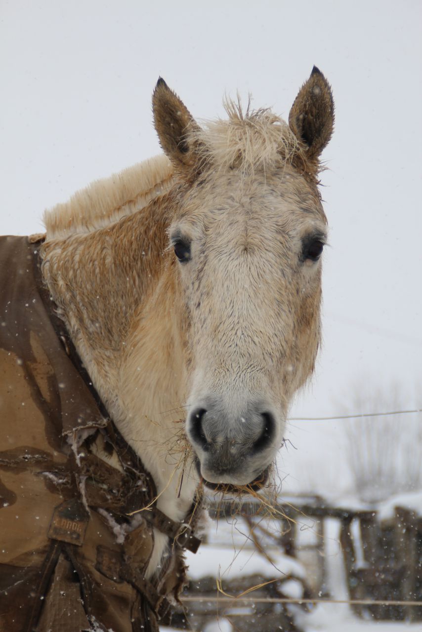 J'en rêvais des photos dans la neige mais bon cheval dégueulasse, couverture, tempête, blizzard ... Pas bonne combi pour les photos... Et le lendemain bah plus de neige dans le champ...
