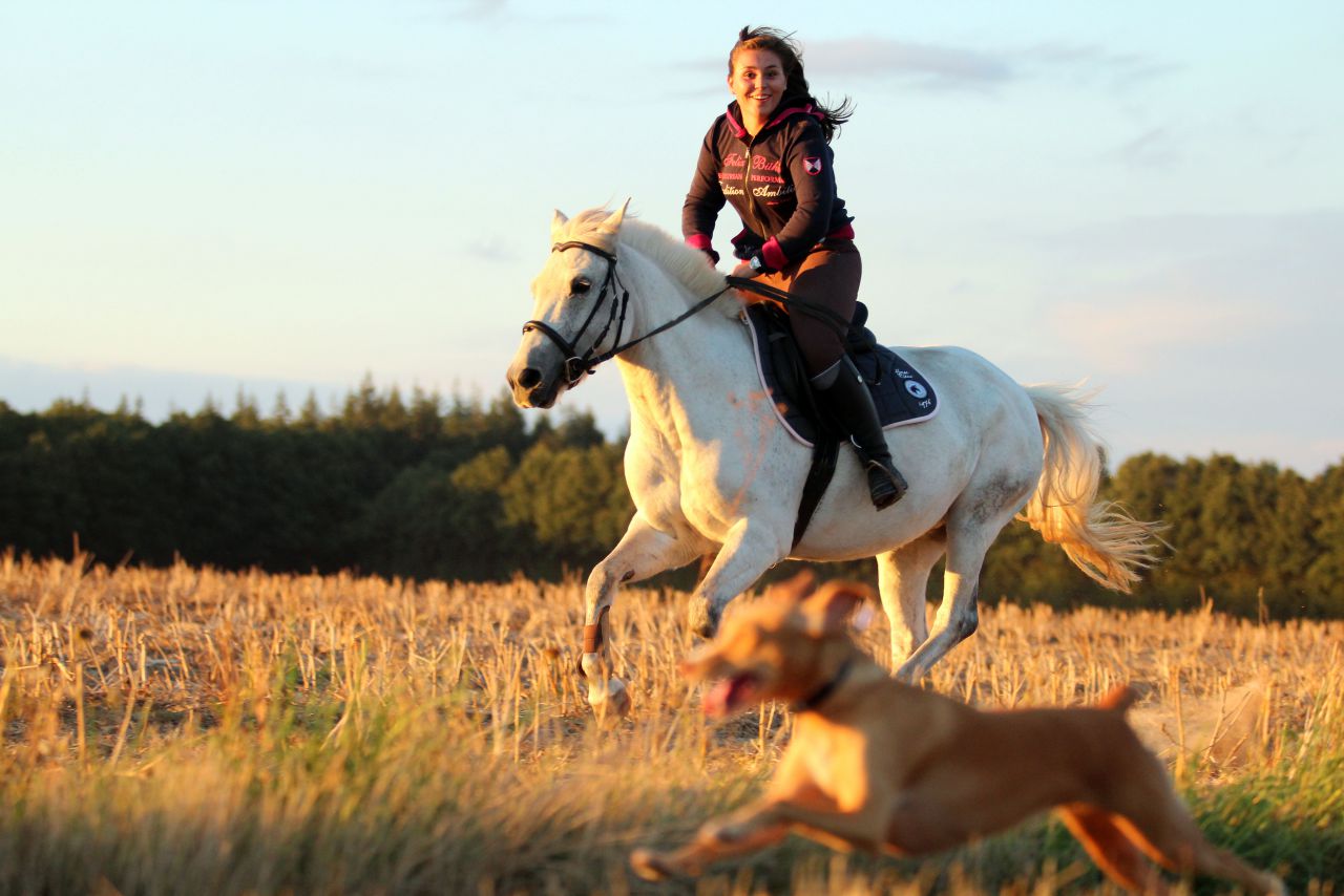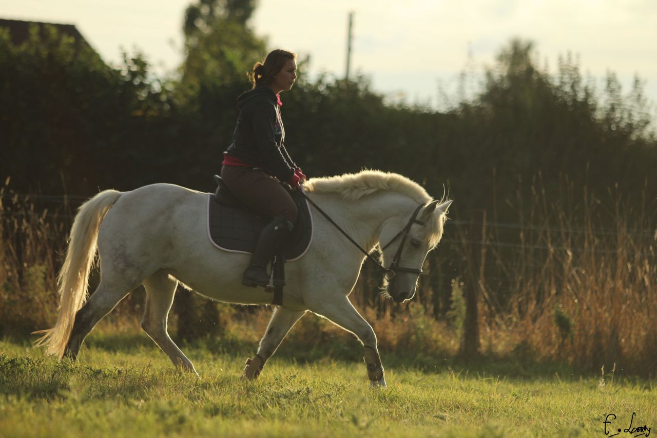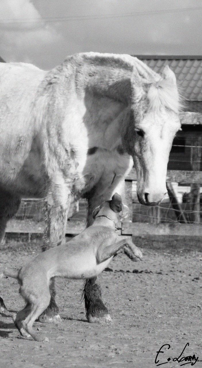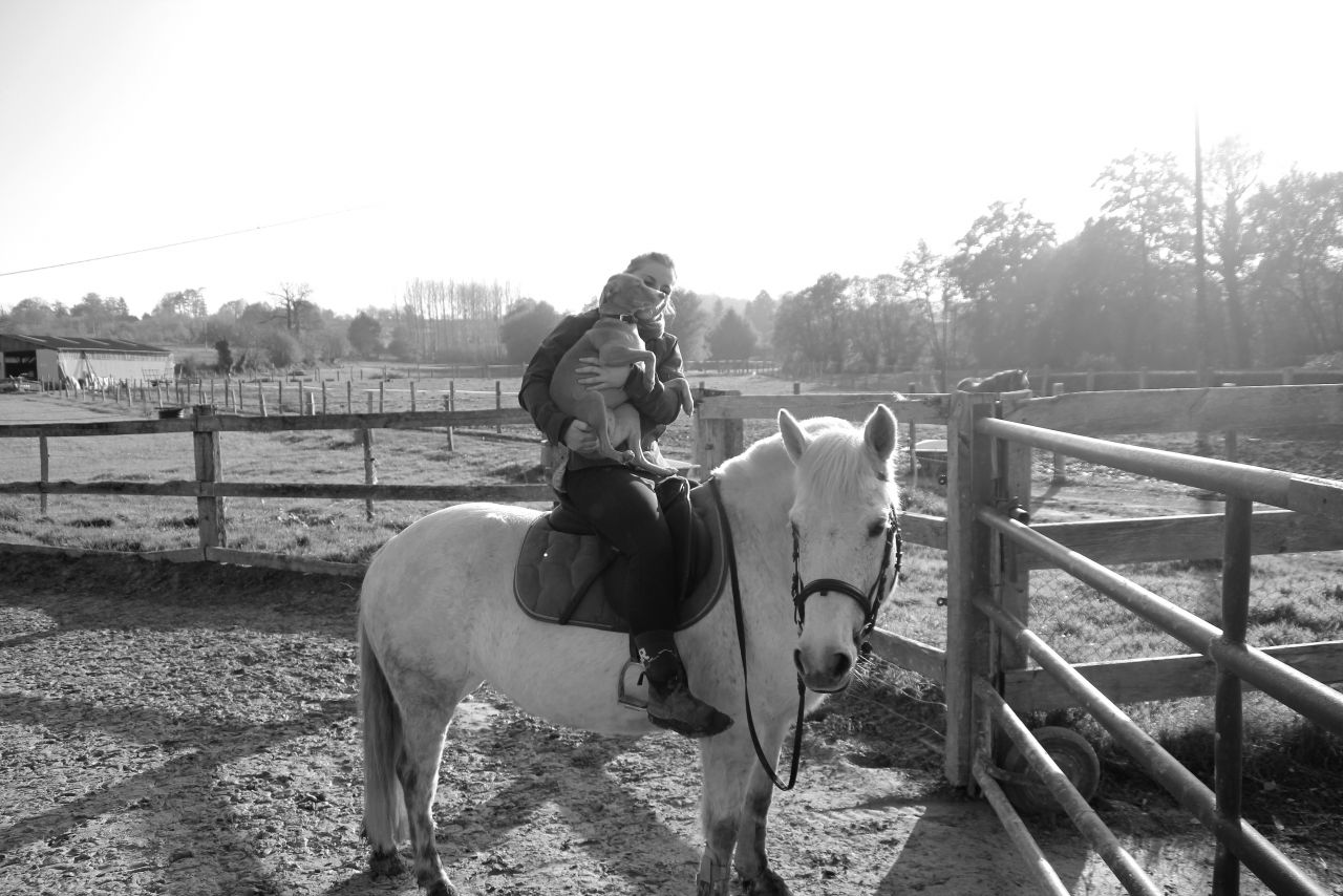 Et je suis bien heureuse car depuis hier je fais des balades à cheval avec ma chienne qui suit ...
